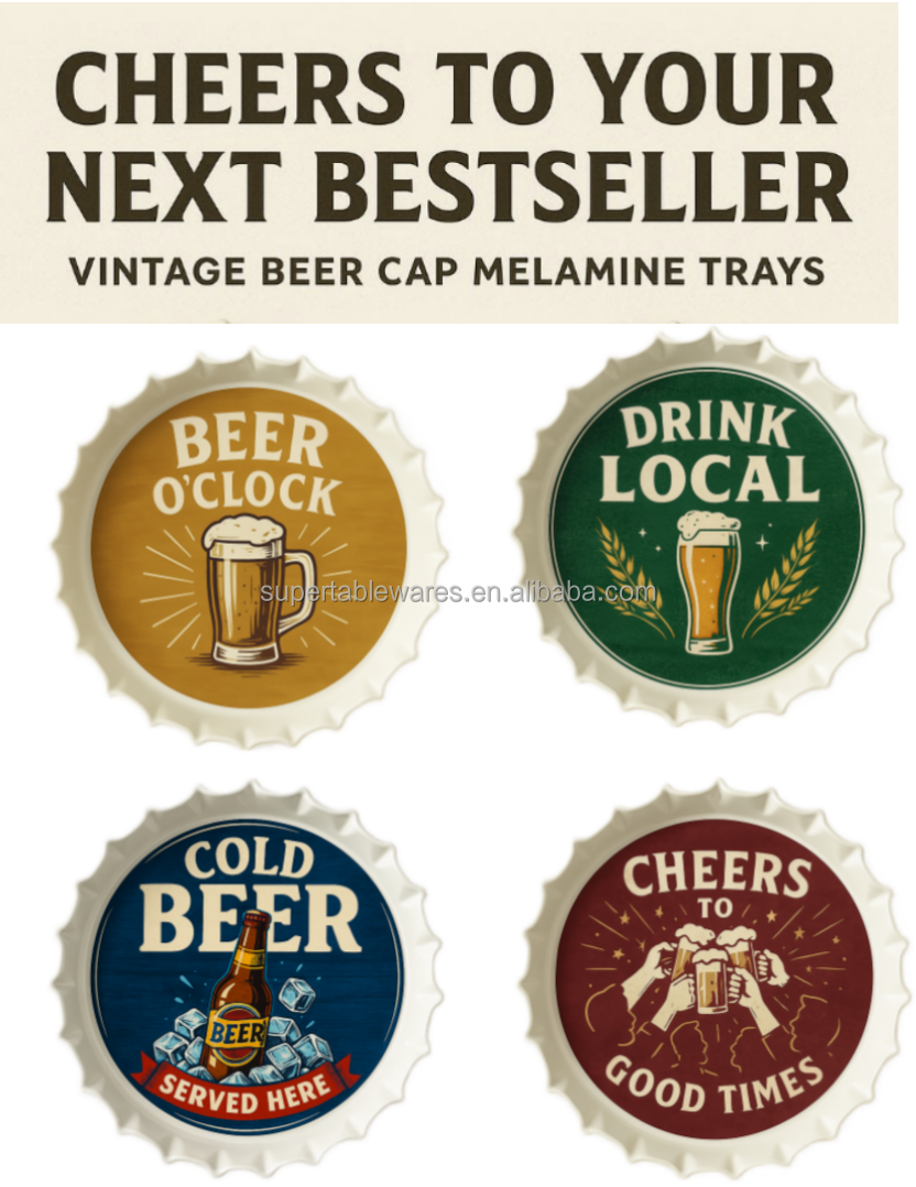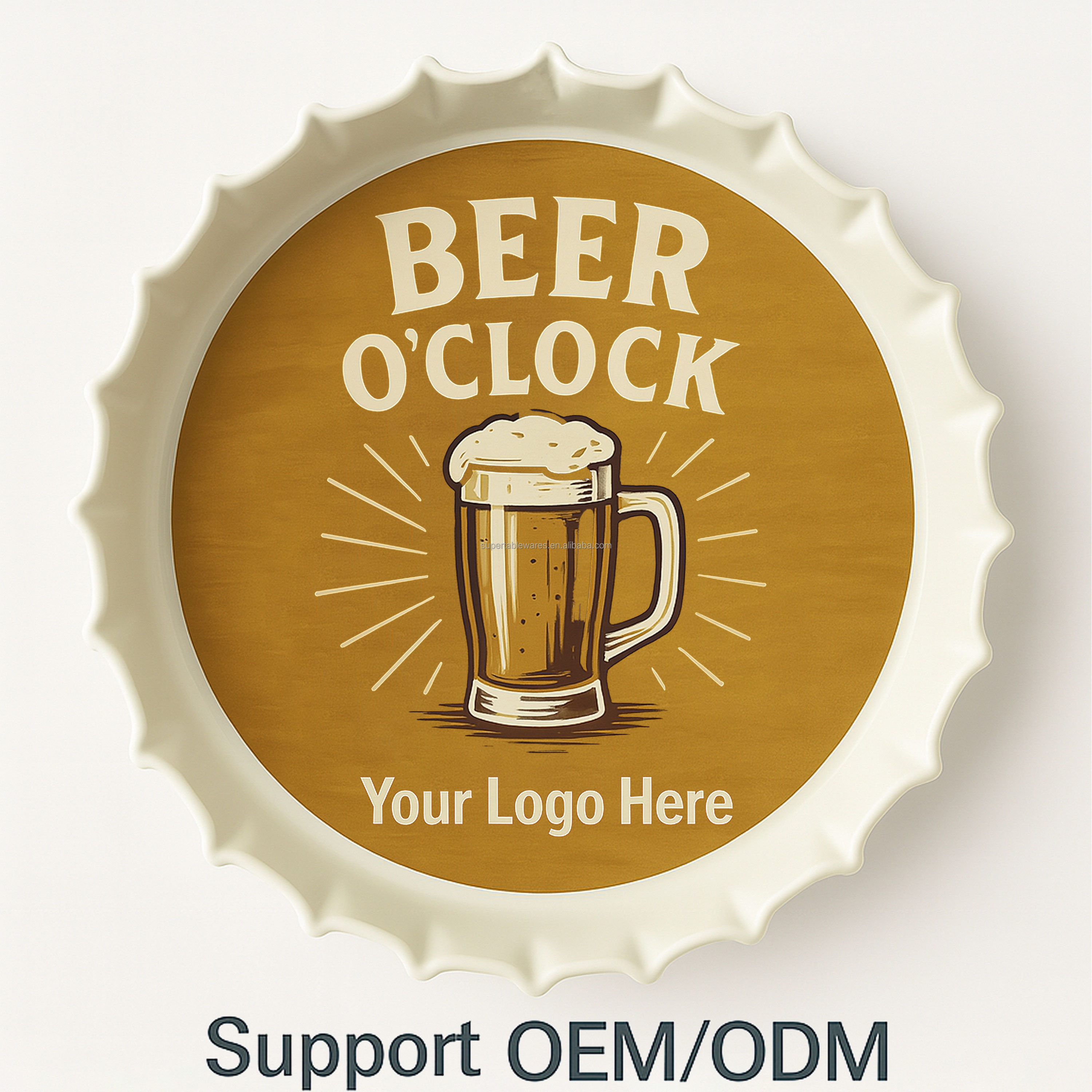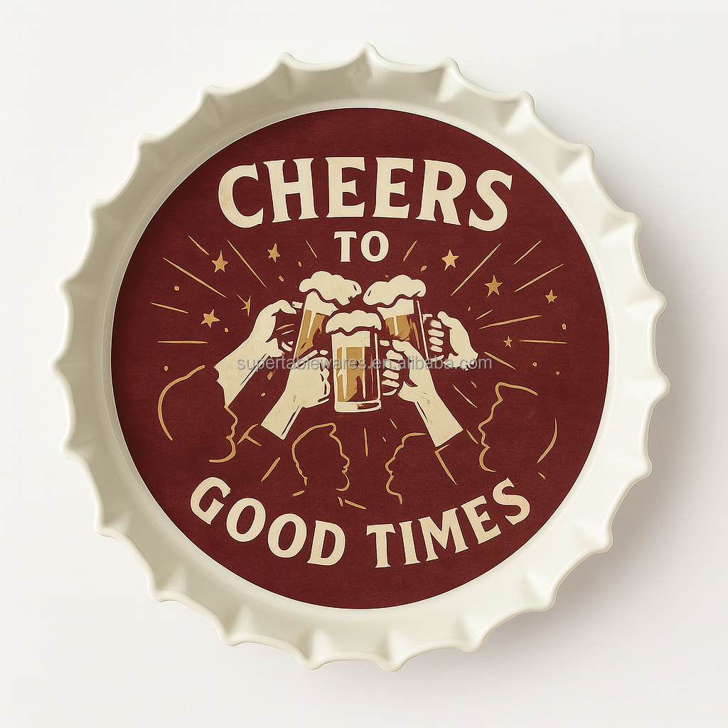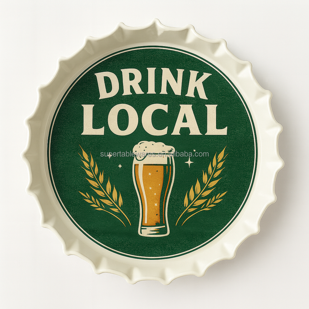 Description: | Bring vintage charm to your hospitality space or brand promotion with our Vintage Beer Cap Melamine Tray. Featuring a realistic bottle cap shape and retro beer-themed graphics, it’s the perfect mix of functionality and personality. |