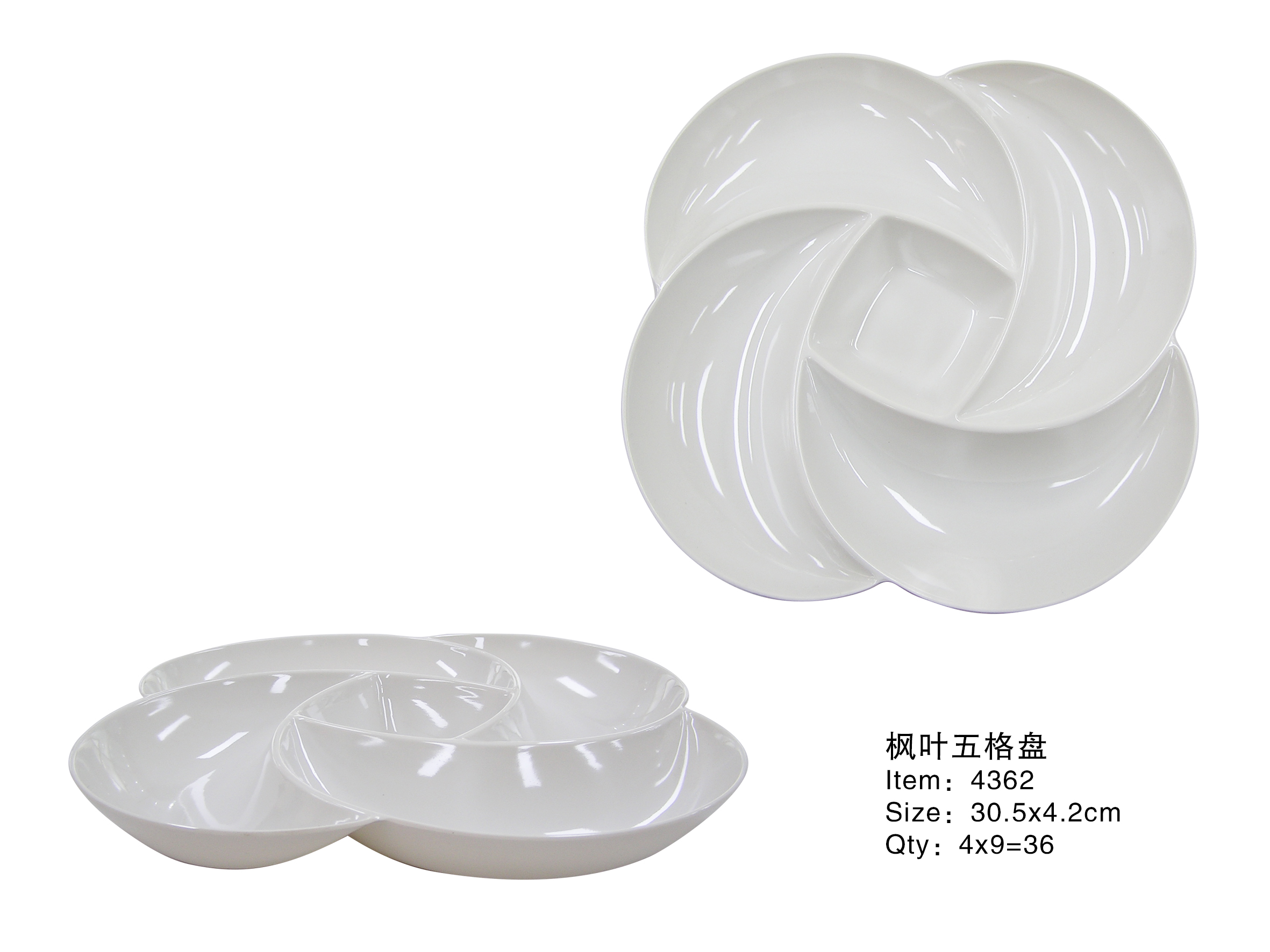 Product Name: Maple Leaf Shaped 5-Compartment Melamine Plate