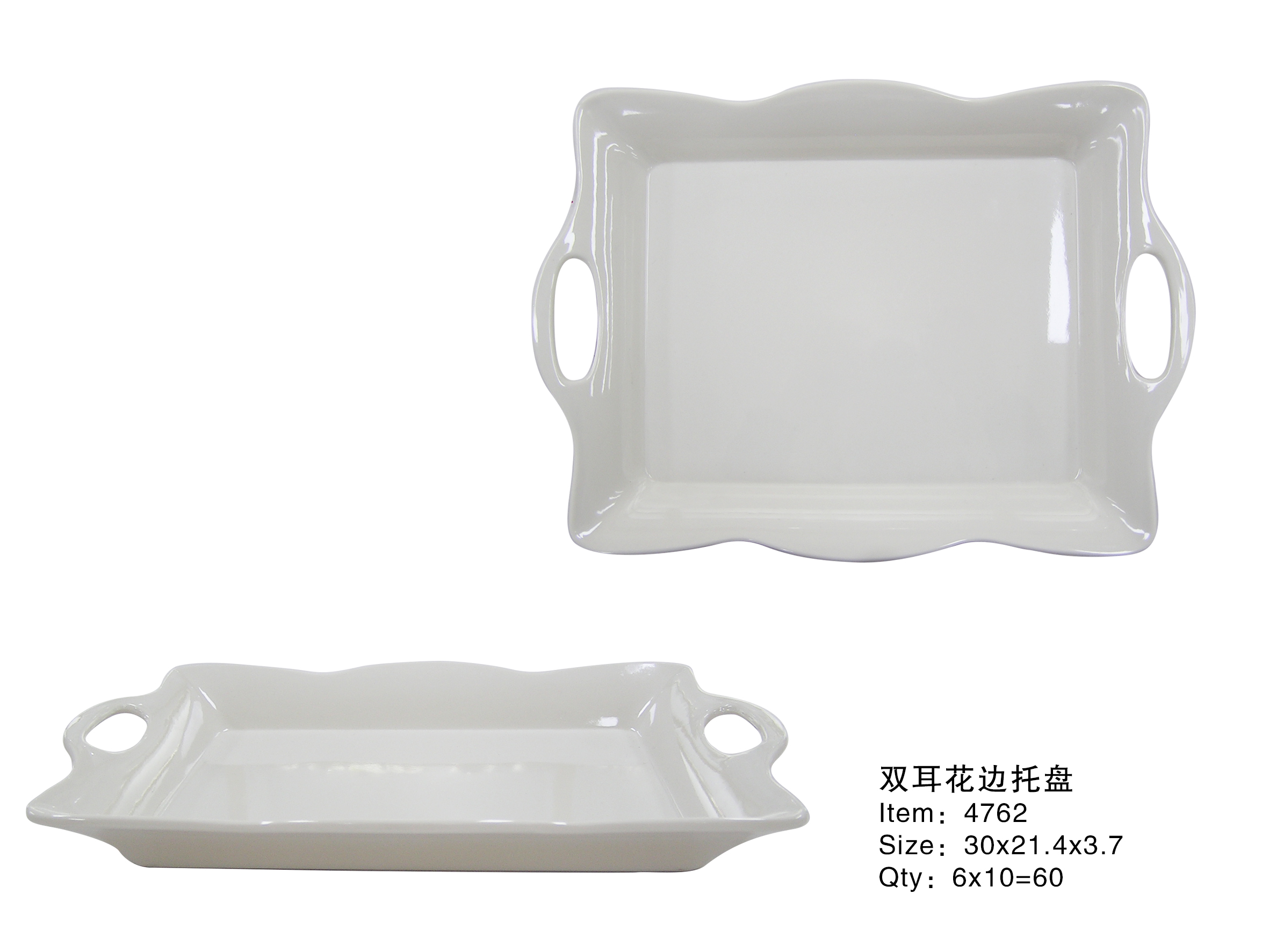 Product Name: Melamine Tray with Handles and Curved Floral Edges