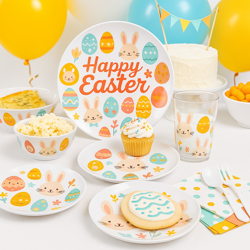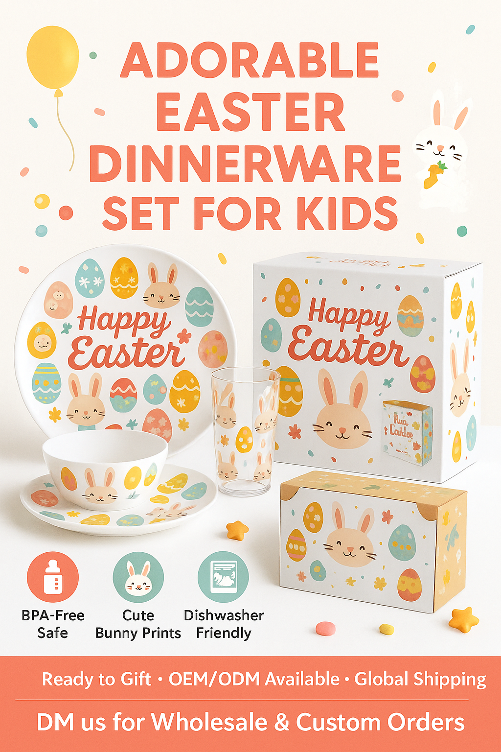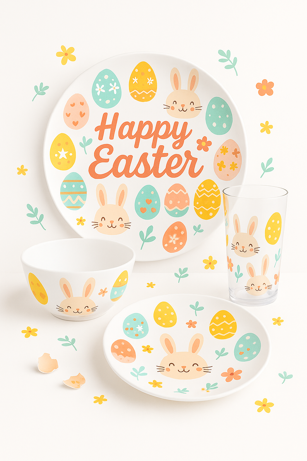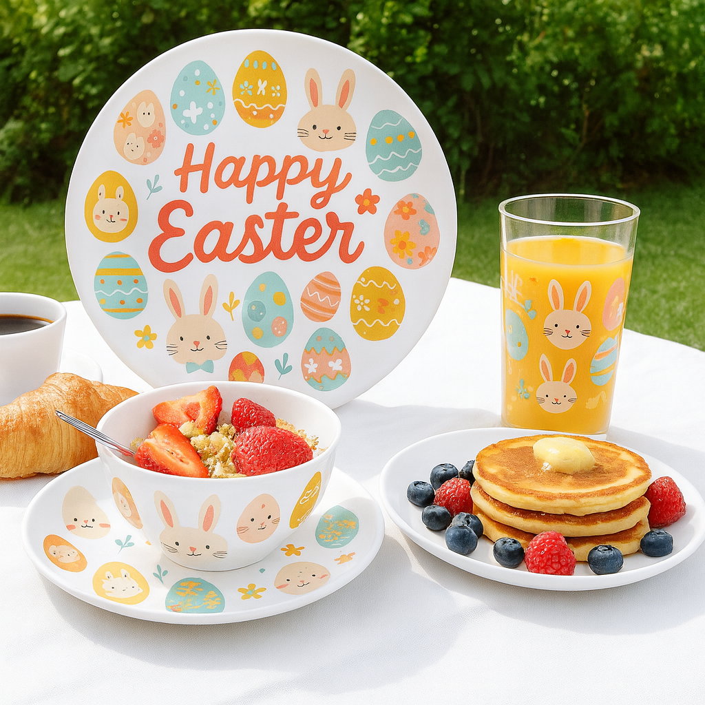 1. Design ConceptInspired by Easter eggs and bunnies, this collection captures the season’s warmth and playfulness. Crafted from shatterproof melamine (plates & bowls) and acrylic (tumbler), it is lightweight, safe, and child-friendly—bringing festive joy to every family table.