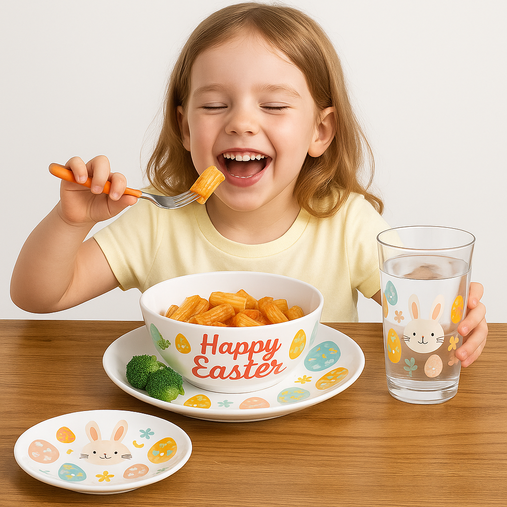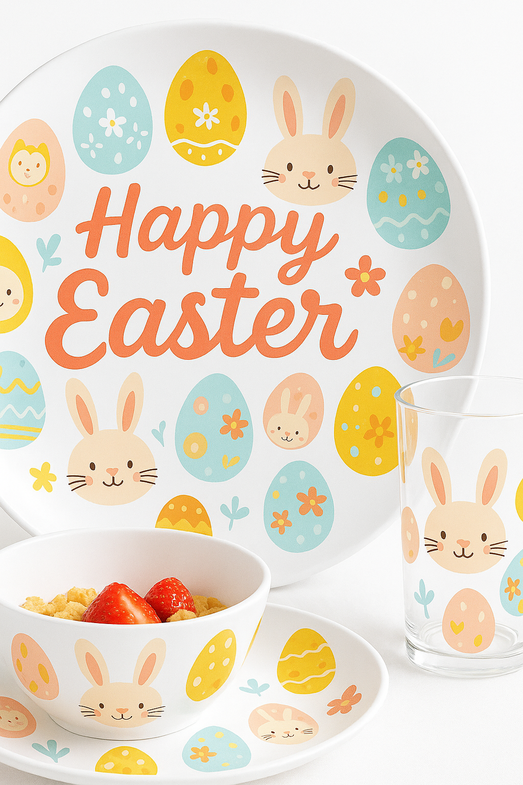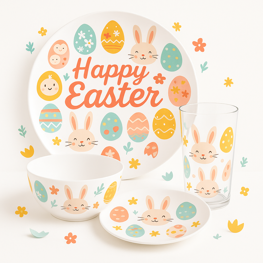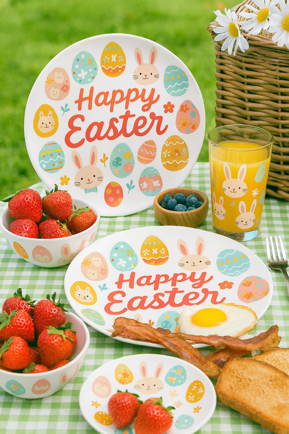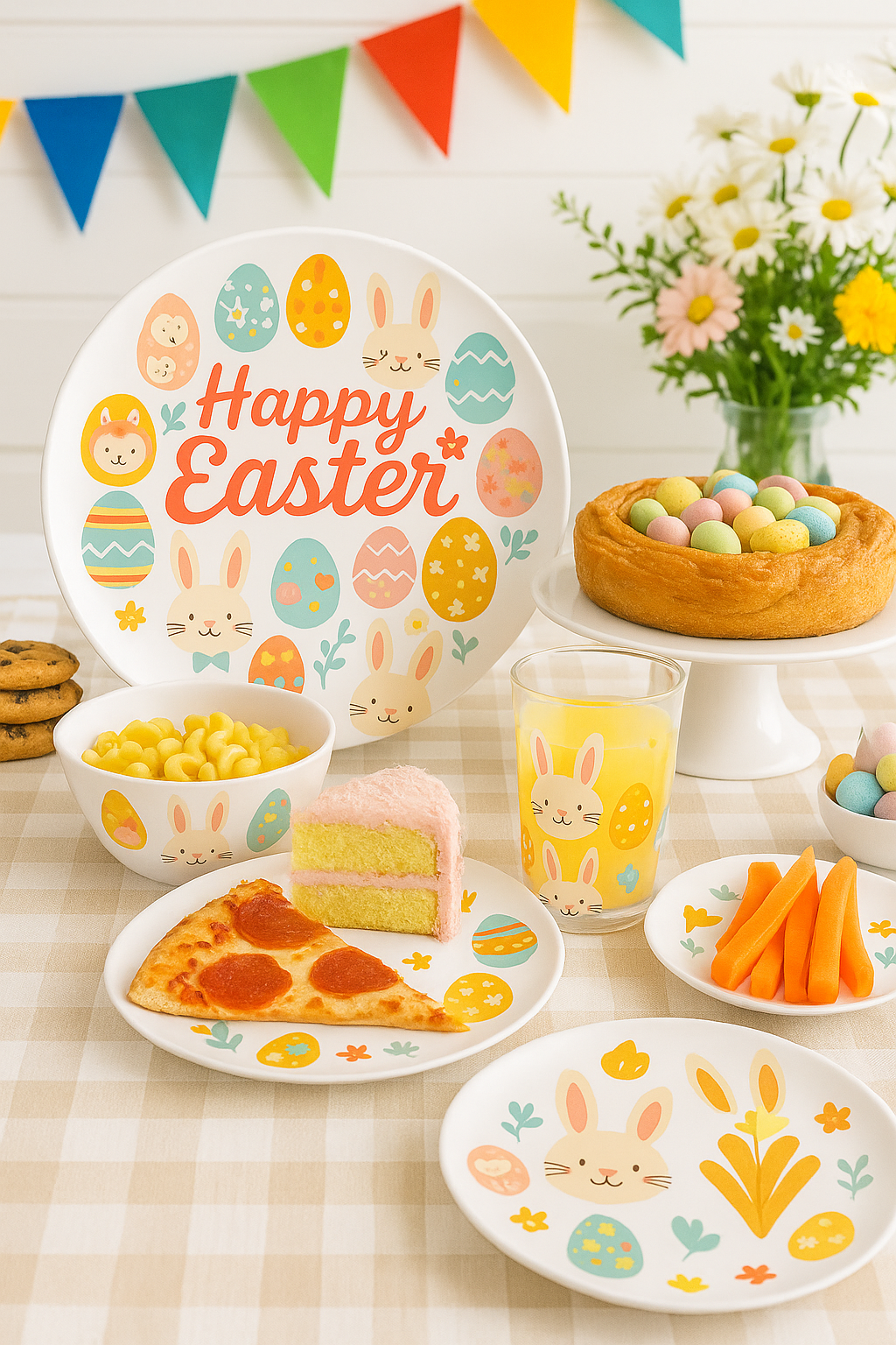 1. Design ConceptInspired by Easter eggs and bunnies, this collection captures the season’s warmth and playfulness. Crafted from shatterproof melamine (plates & bowls) and acrylic (tumbler), it is lightweight, safe, and child-friendly—bringing festive joy to every family table.