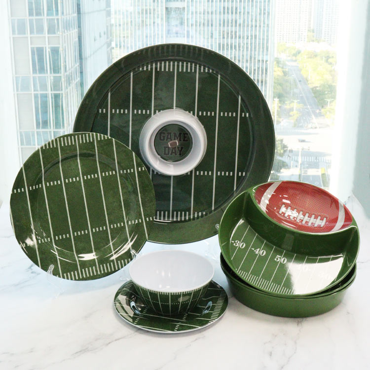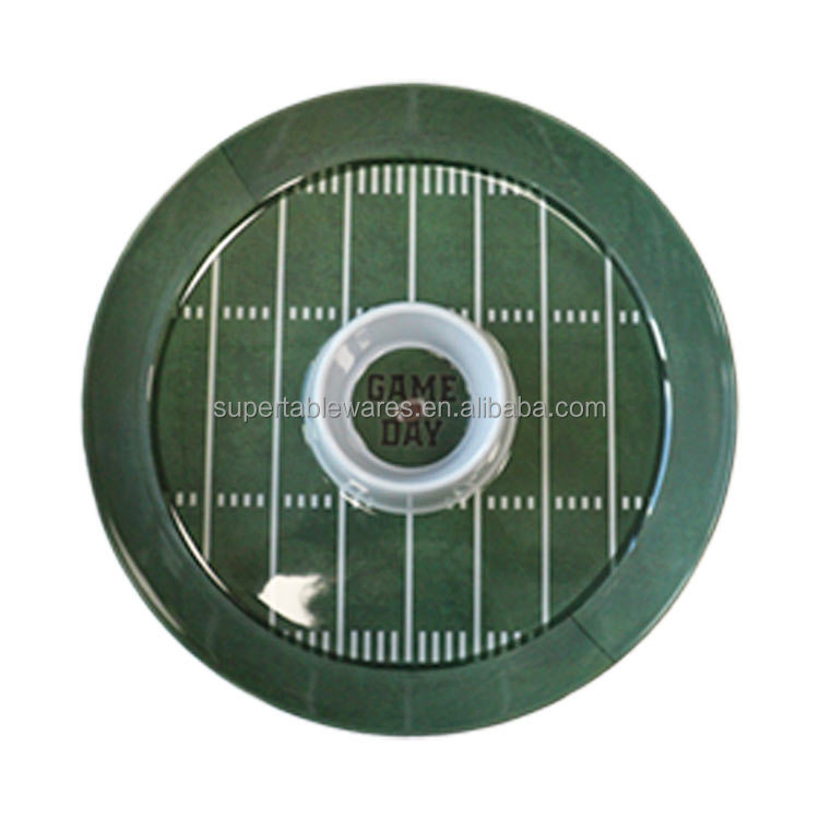 Heavyweight Reusable Plastic Football Game Day Sport Events Food Snack Plate Melamine Chip & Dip Platter for Celebration Party
