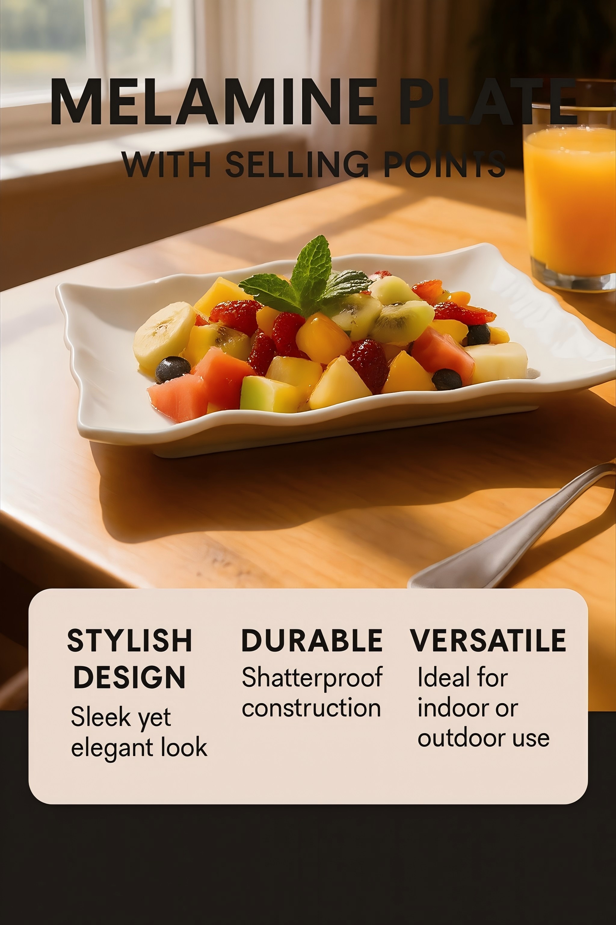 Product Name: Ribbon-Edge Rectangular Melamine Serving Plate