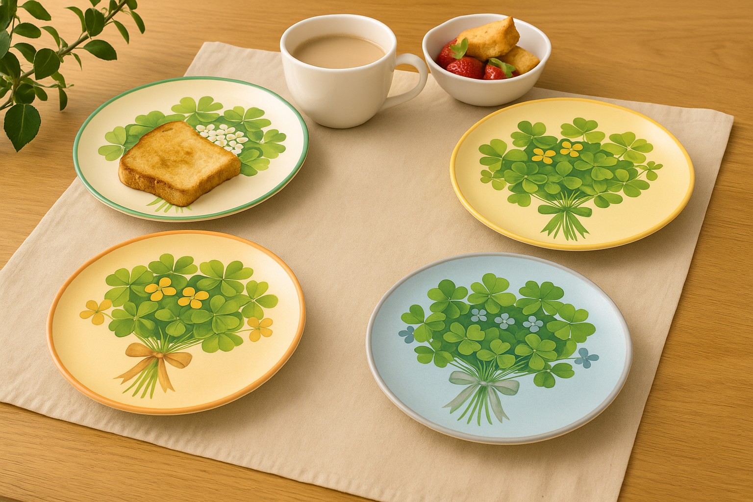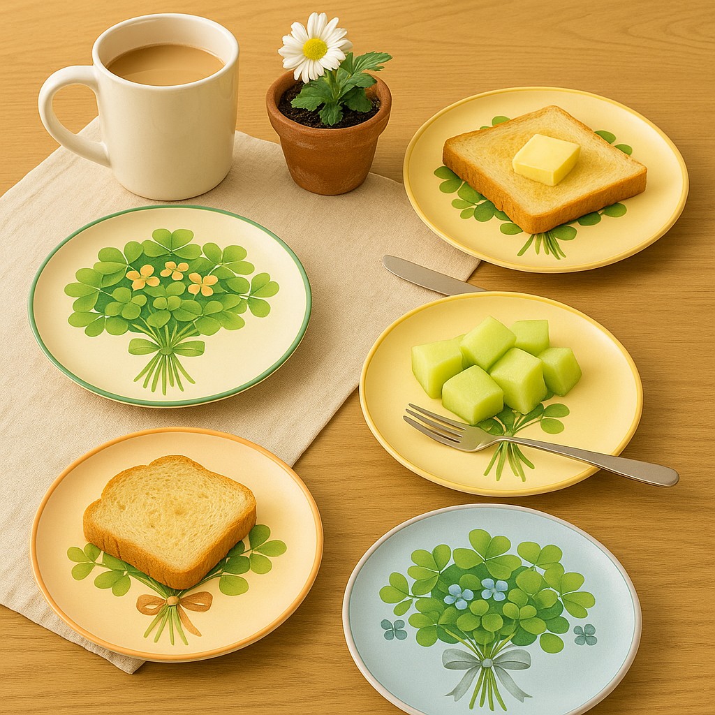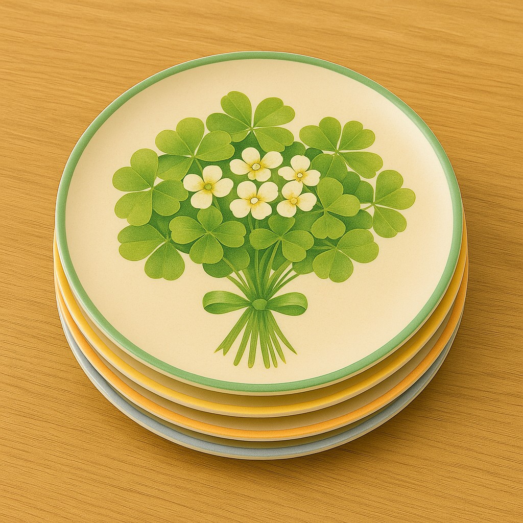 dd a refreshing touch of nature to your table with this 4-piece Clover Collection melamine plate set by XINBAIWARE. Featuring charming clover bouquet illustrations in four soft color tones, this set is perfect for everyday use, spring dining, picnics, and thoughtful gifting.