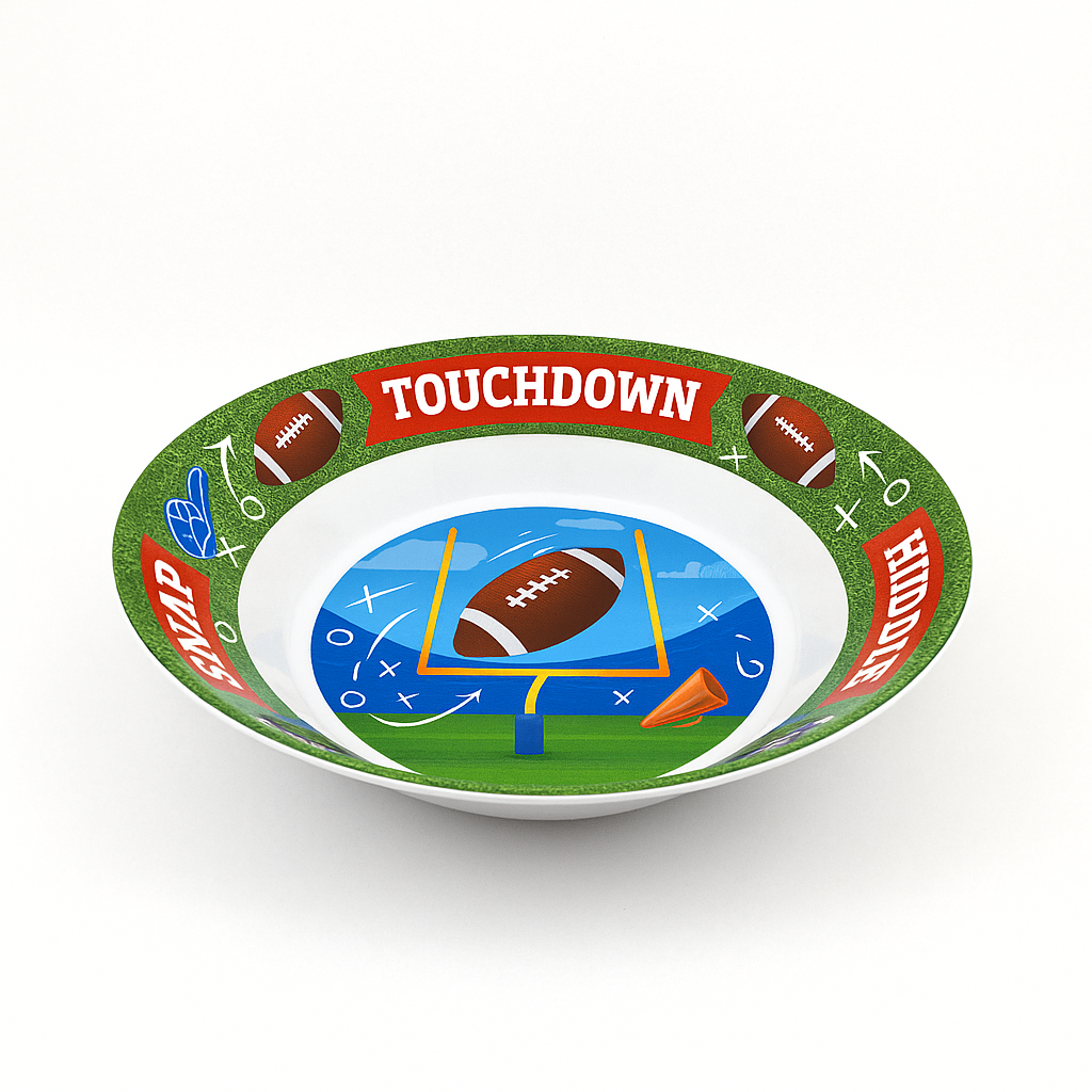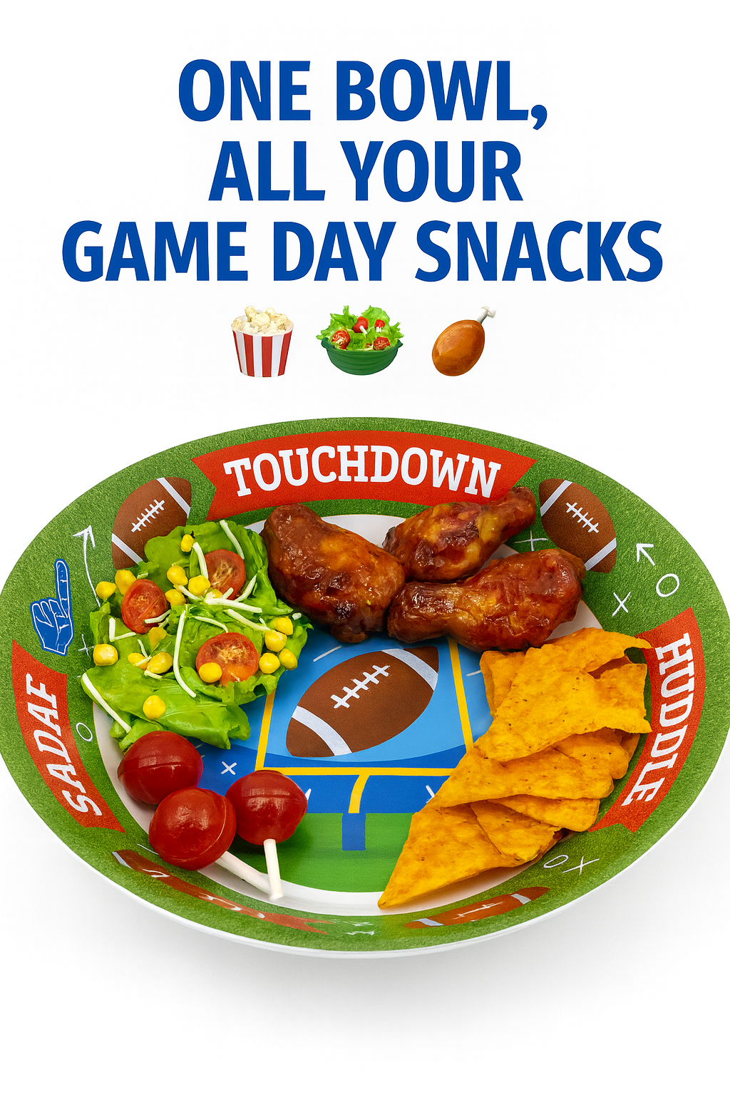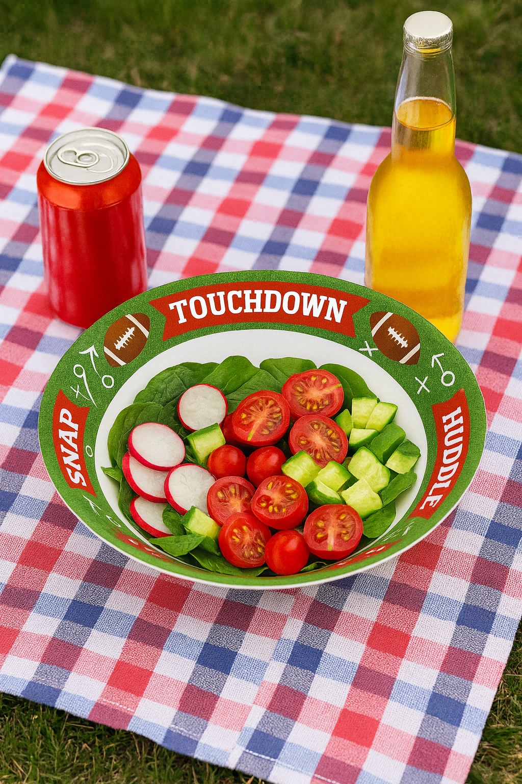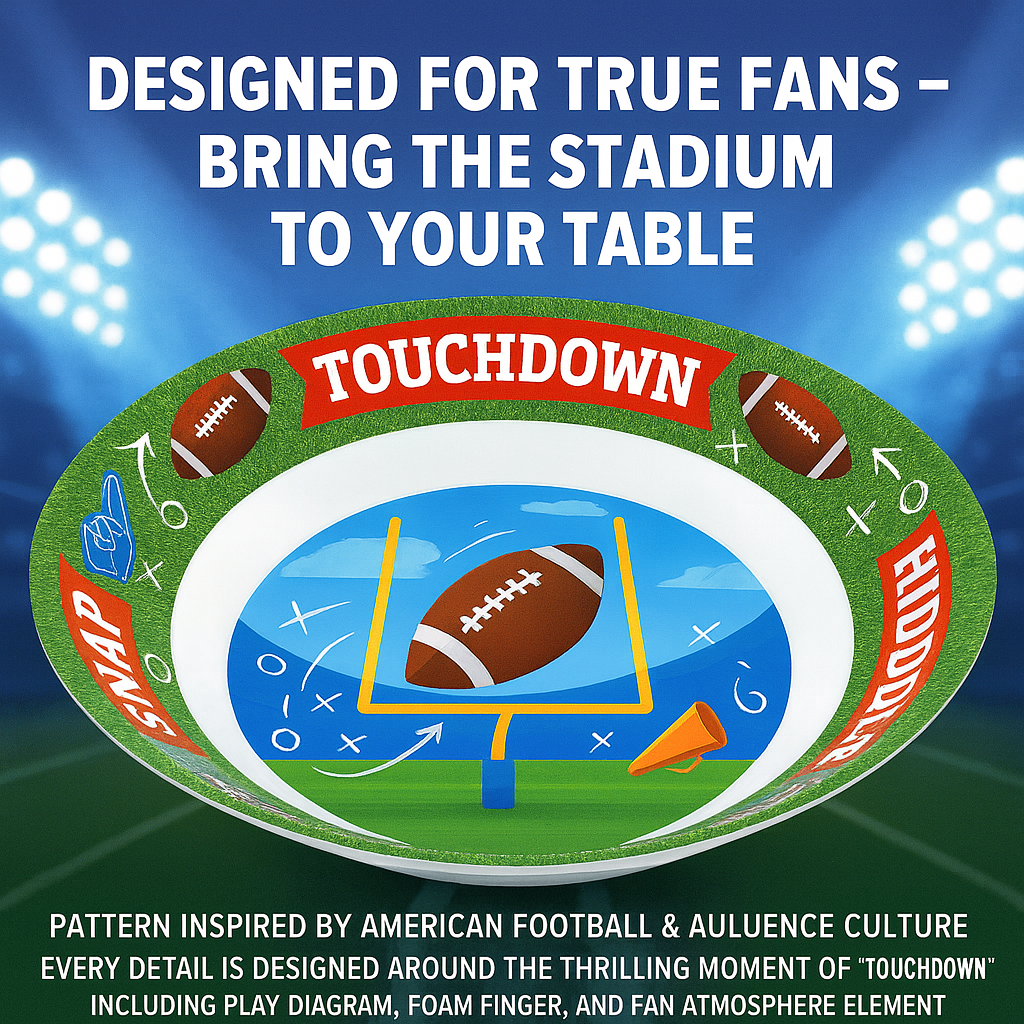 🏈 Football-Themed Design: Features a colorful football field and goalpost graphic, with “TOUCHDOWN,” “HUDDLE,” and “SNAP” around the rim to create the ultimate game-day vibe.