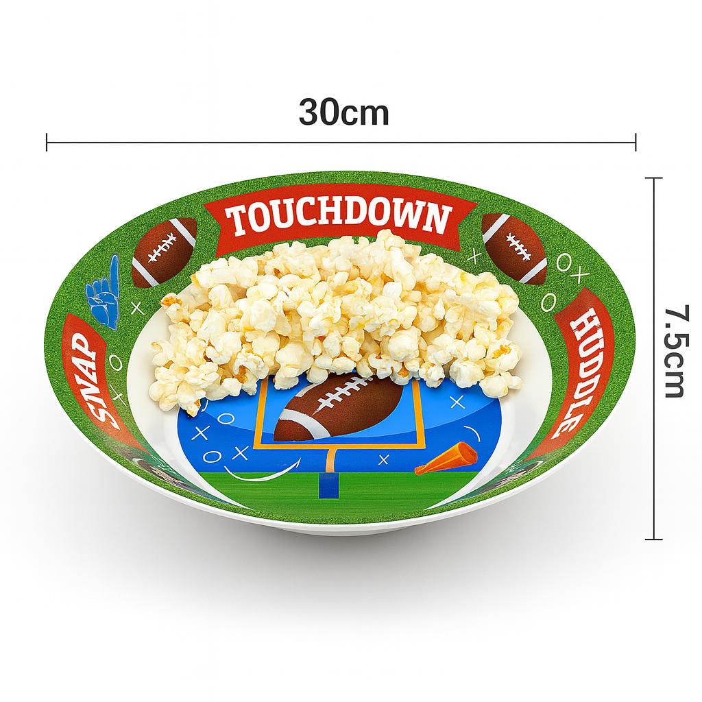 🍿 Large Capacity Sharing Bowl: 30cm wide and 7.5cm deep, perfect for serving popcorn, chips, pretzels, wings, or nachos at parties.