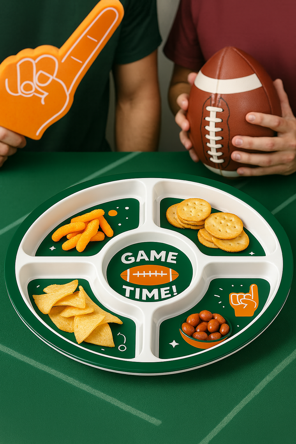 Game Time Football Snack Serving Tray – 5-Compartment Party Platter for Game Day & Tailgating