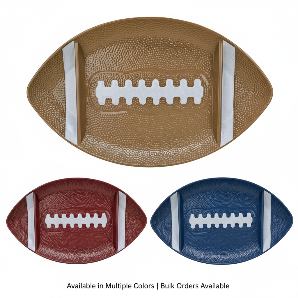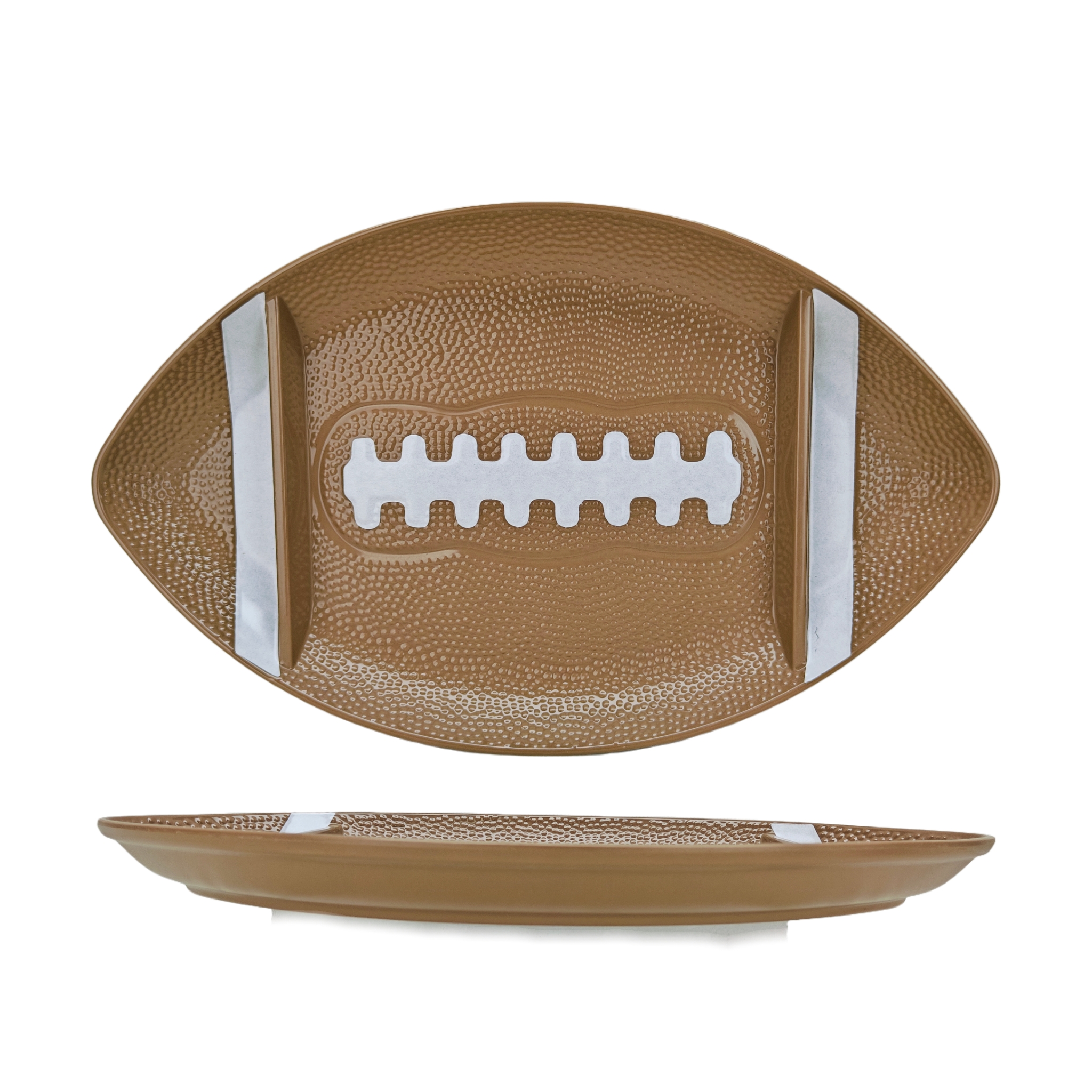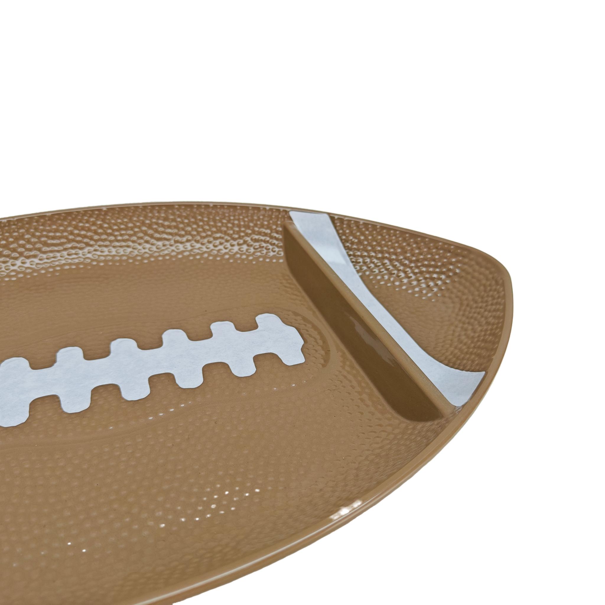 Serve your snacks in style with this football-shaped serving platter! Made of durable melamine with realistic texture and laces detail, it’s reusable, dishwasher safe, and perfect for Super Bowl parties, NFL game days, BBQs, and tailgates.