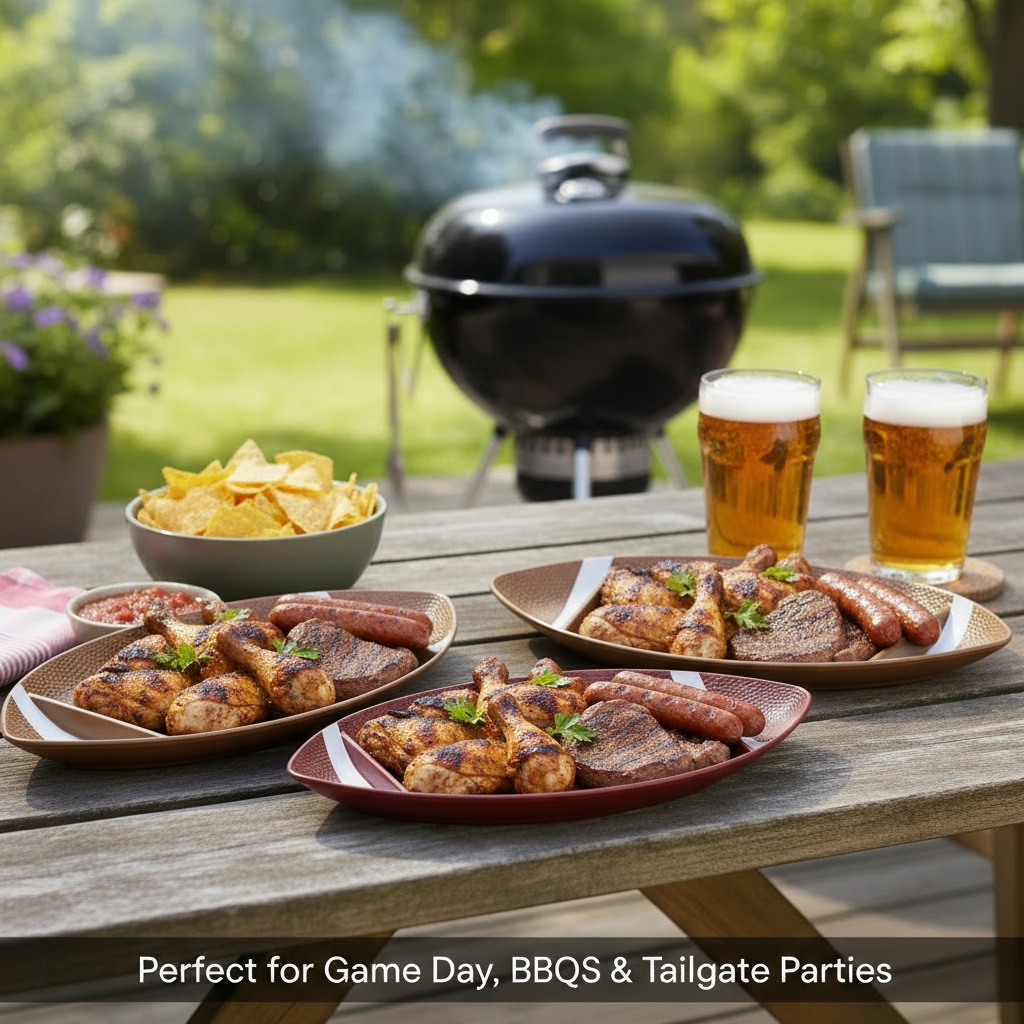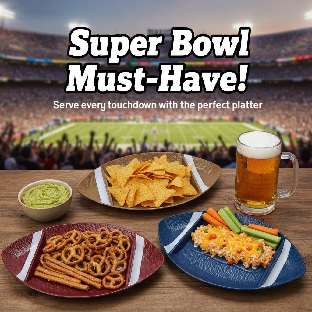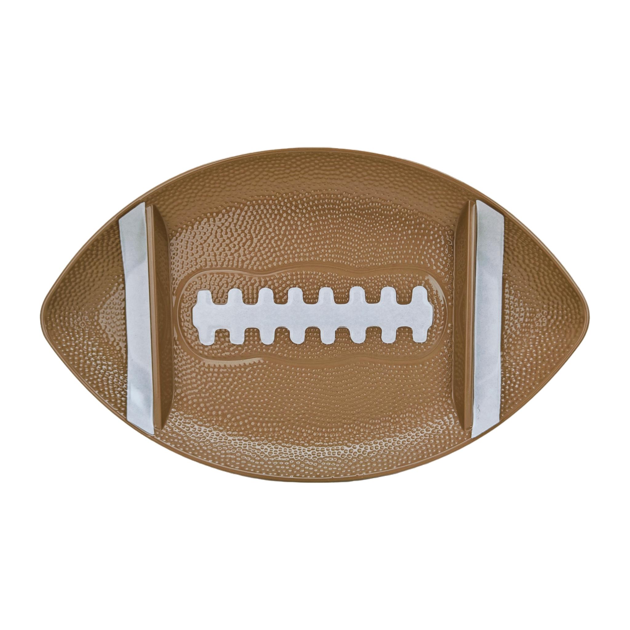 Serve your snacks in style with this football-shaped serving platter! Made of durable melamine with realistic texture and laces detail, it’s reusable, dishwasher safe, and perfect for Super Bowl parties, NFL game days, BBQs, and tailgates.