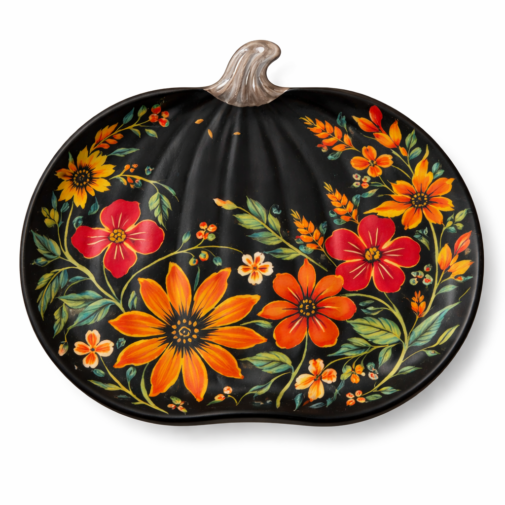 Inspired by the richness of autumn in full bloom, this design pairs expressive florals with a deep black canvas, capturing a refined seasonal elegance that feels artful, warm, and intentional.