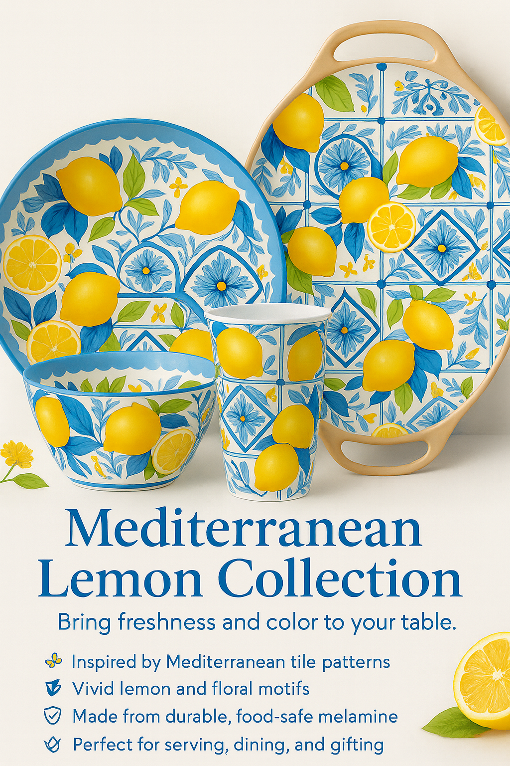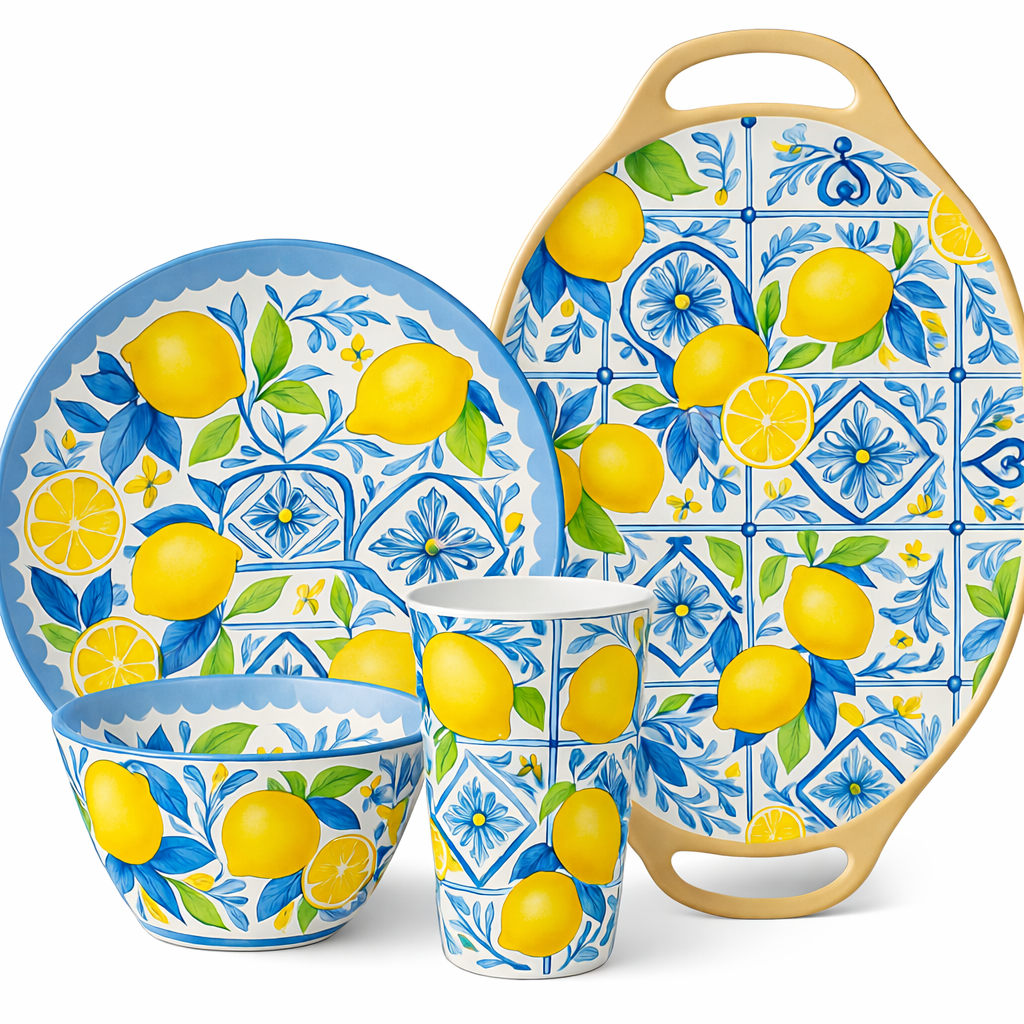 Mediterranean Lemon Melamine Tableware | Modern Summer Dining