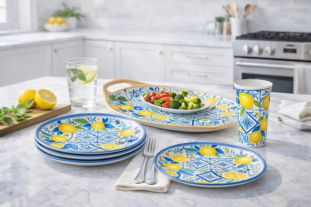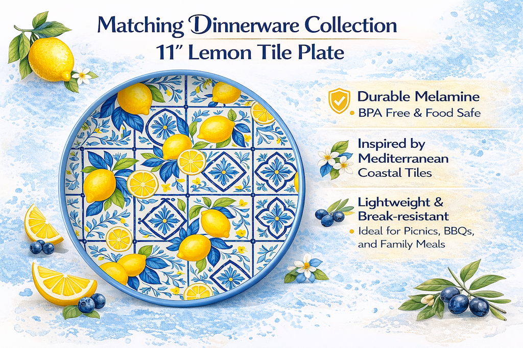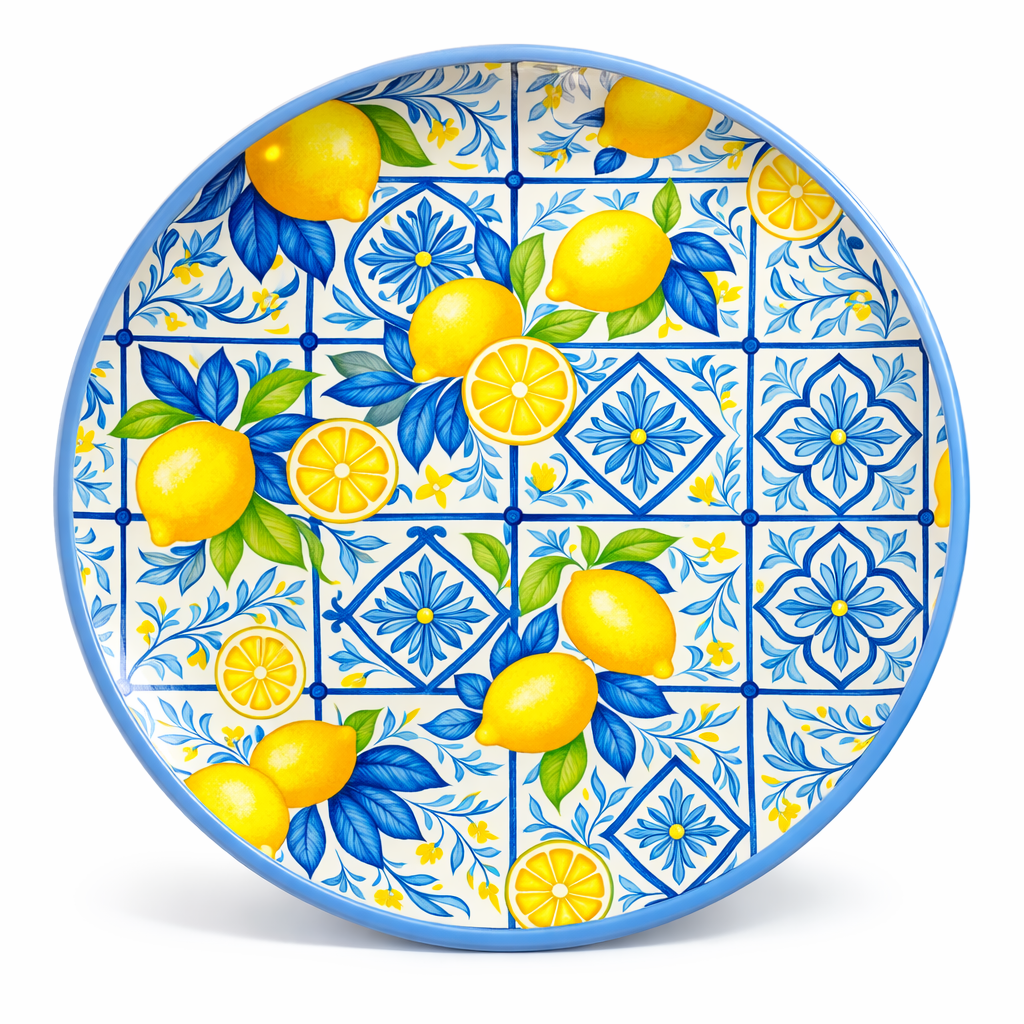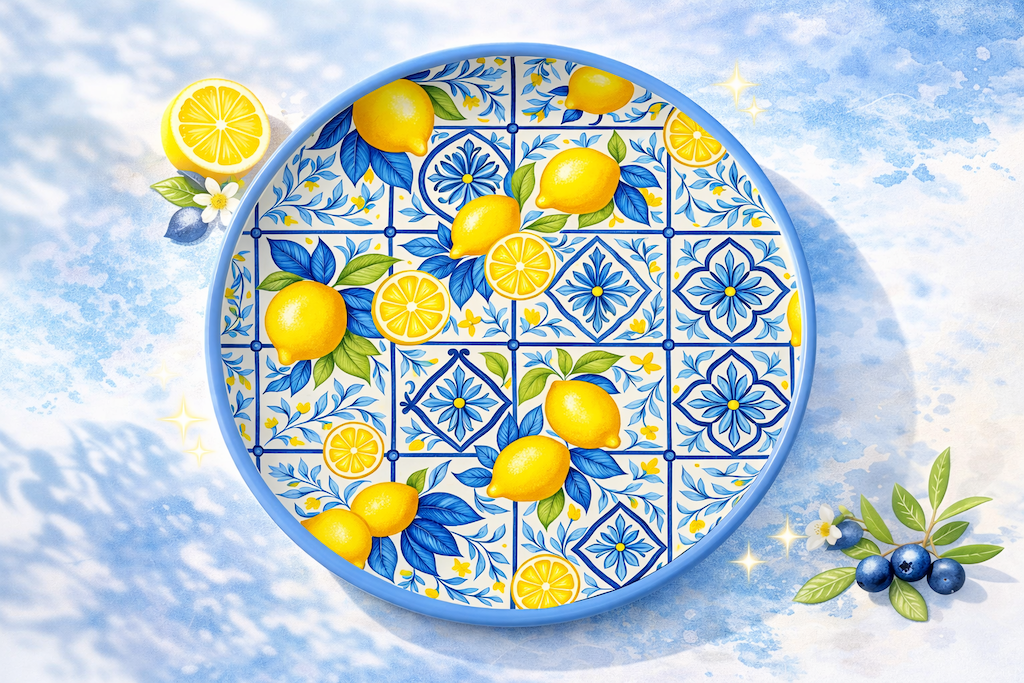 Drawing from classic Mediterranean tile architecture, the lemon motif symbolizes sun, vitality, and timeless coastal living.