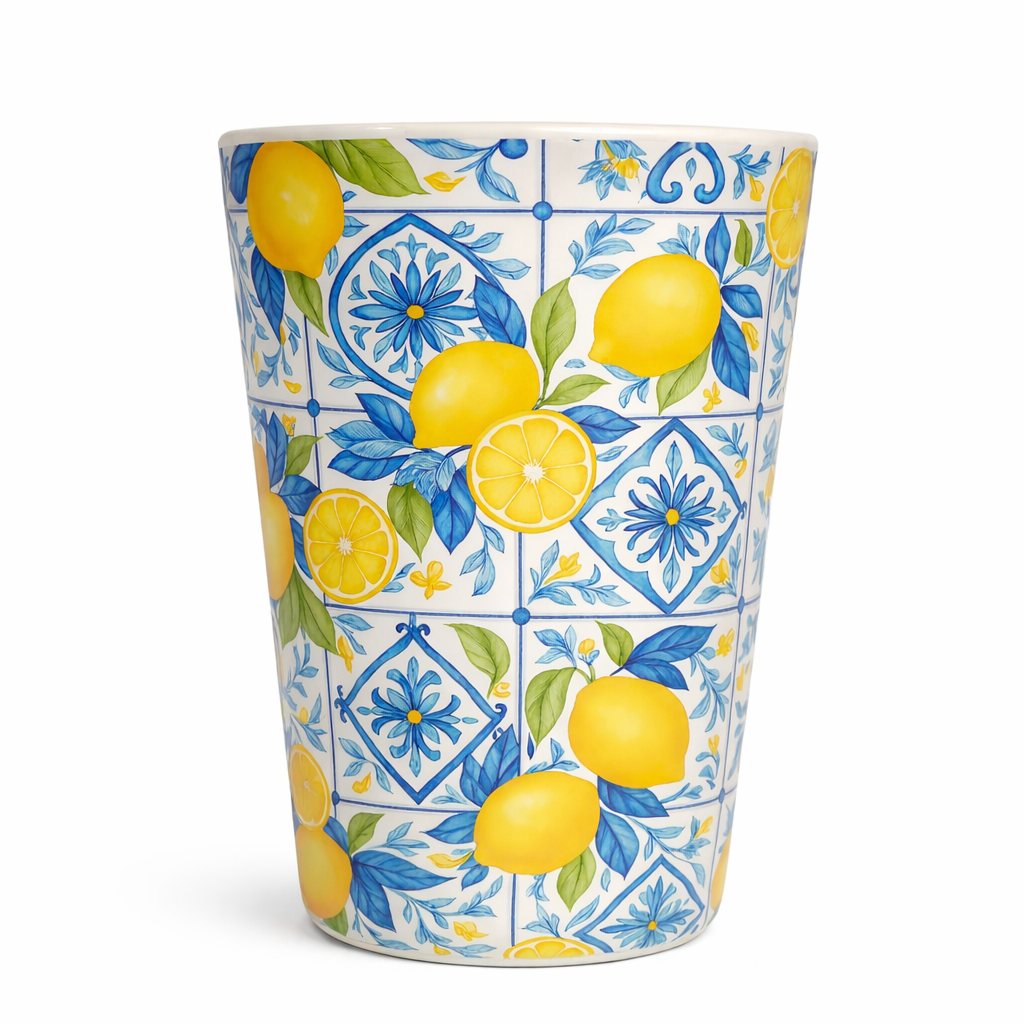 Inspired by classic Mediterranean tile art, combining lemon motifs with structured geometry for a timeless coastal aesthetic.