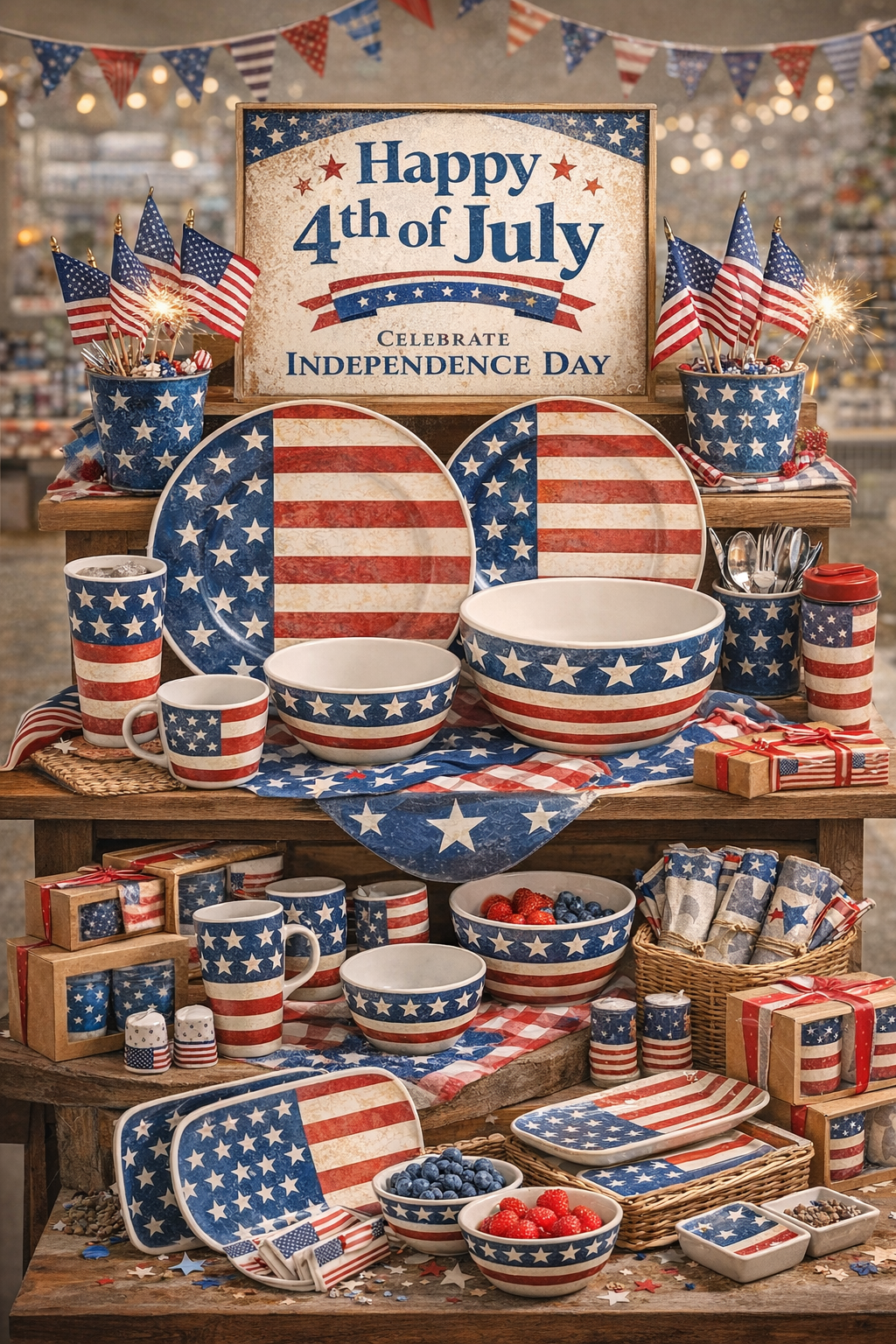 Ideal for Independence Day, summer assortments, outdoor dining collections and USA-themed product lines.