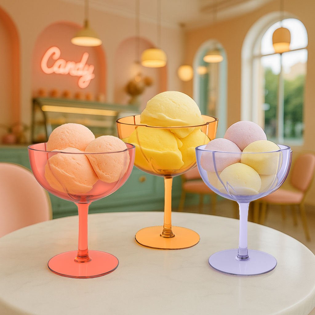 • Food-grade material for cold drinks and plated desserts