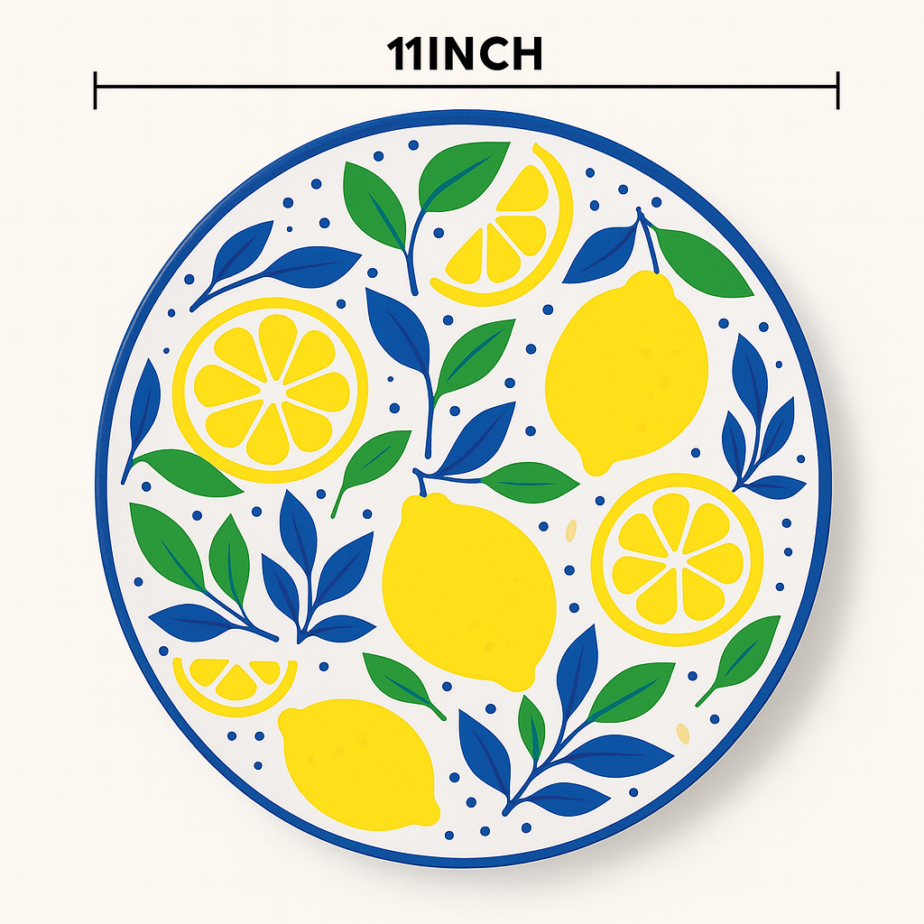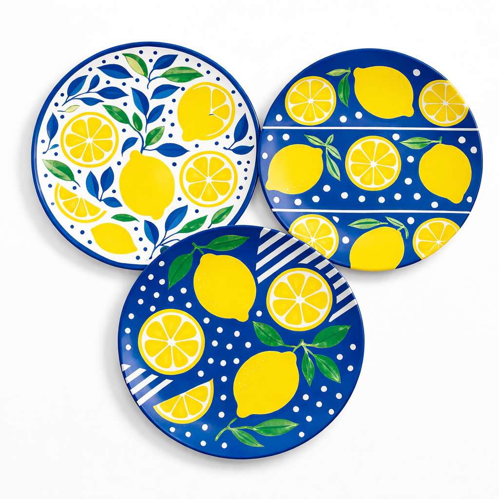 Featuring a bold blue background with vibrant lemon motifs, this plate captures the relaxed charm of Southern Italy and coastal living.