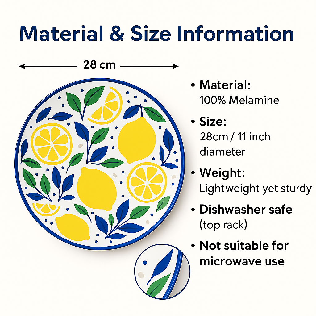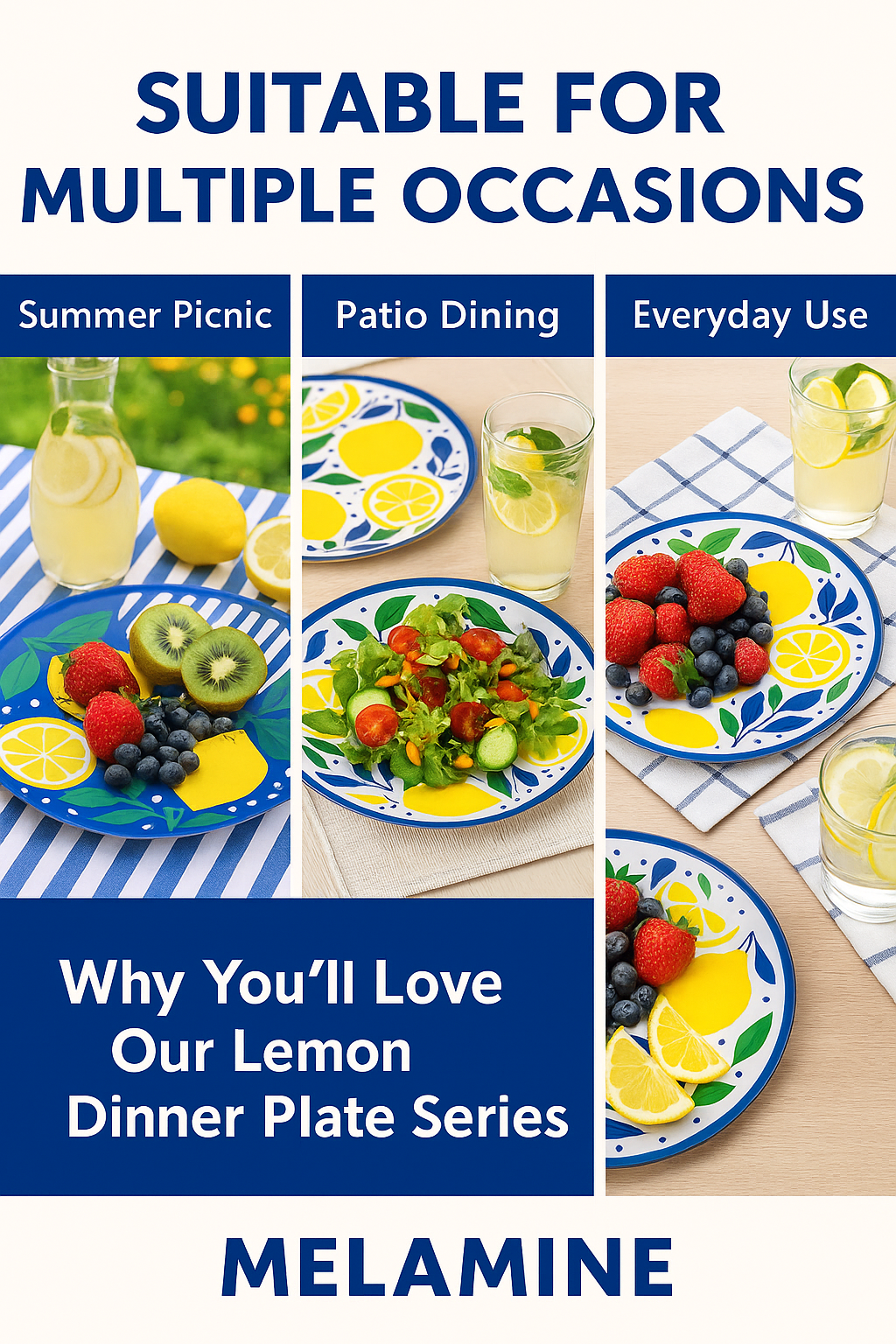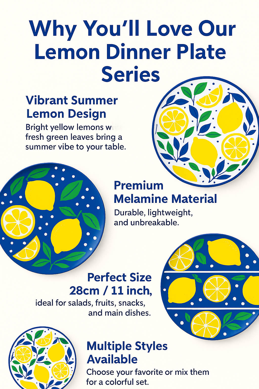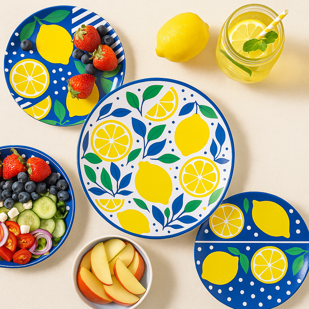This lemon pattern melamine plate is designed for wholesale and commercial tableware supply. Made from food grade, BPA free melamine, it offers excellent durability for professional food service use.