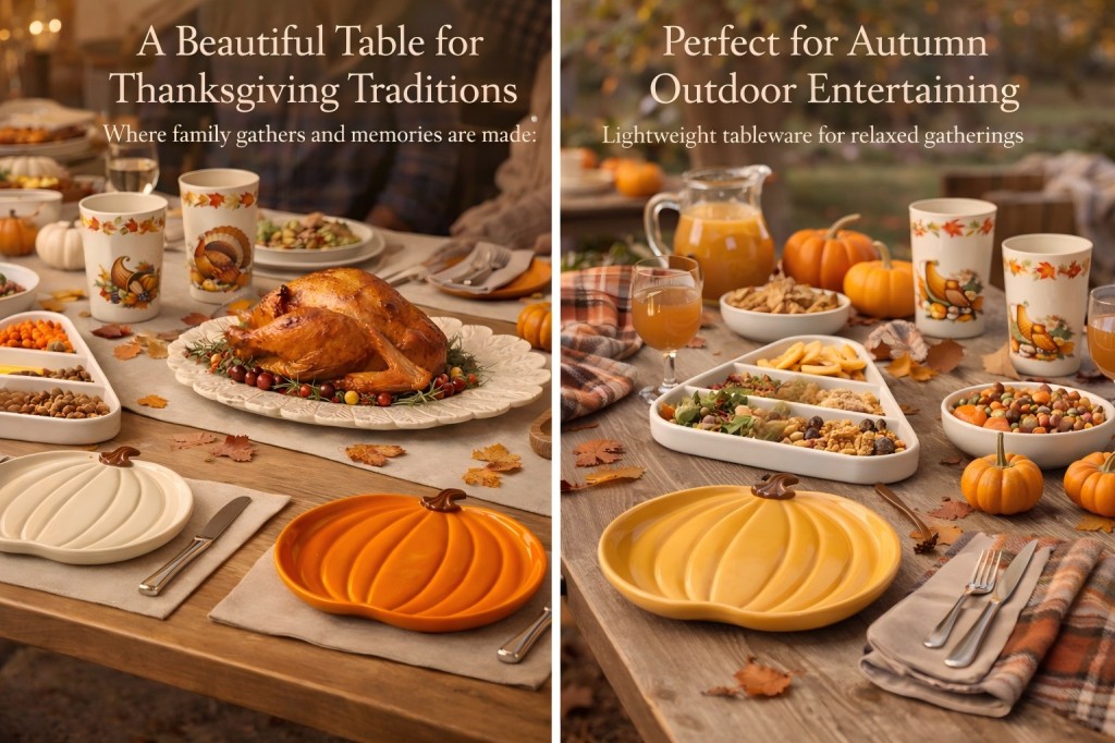 Complete Thanksgiving melamine dinnerware set for seasonal dining