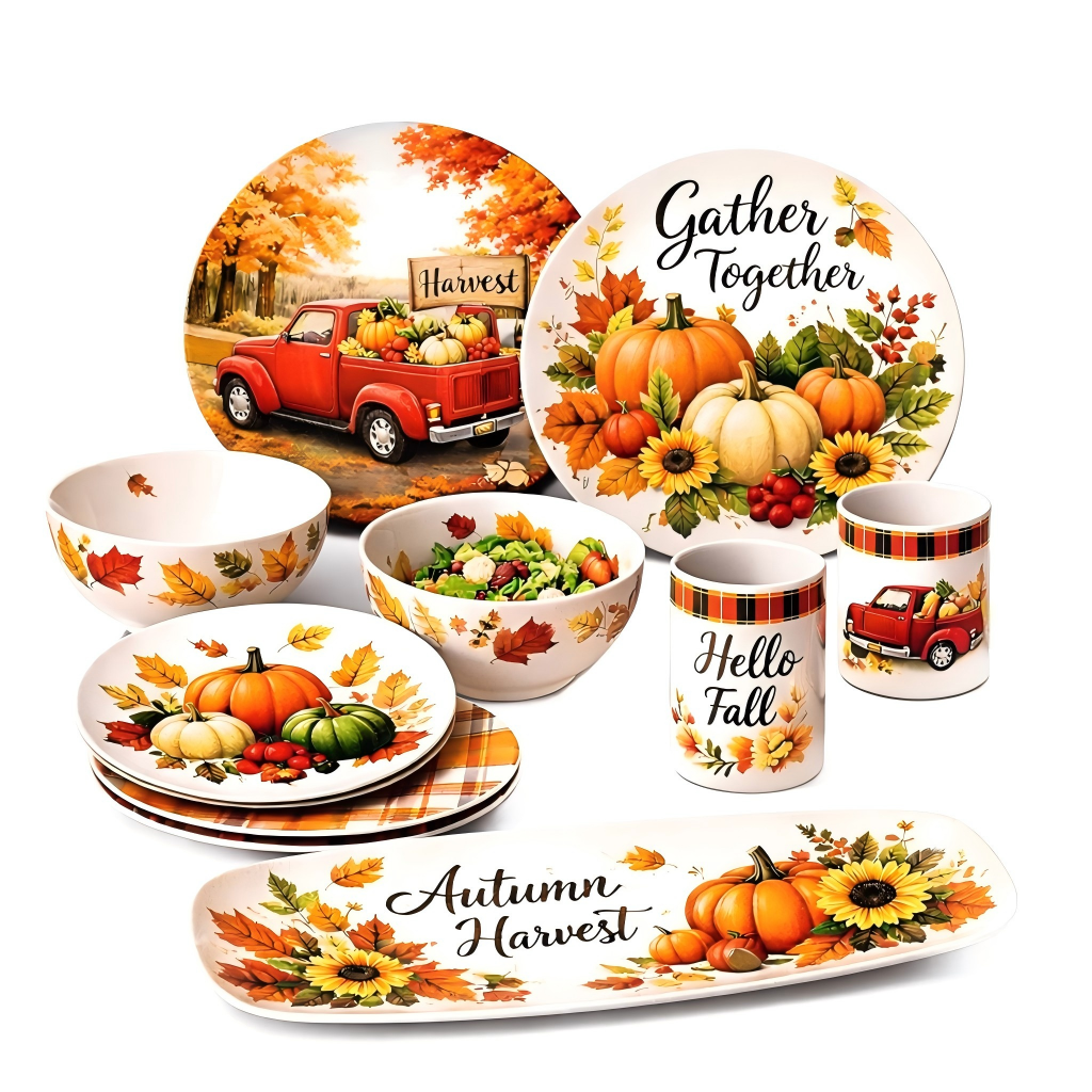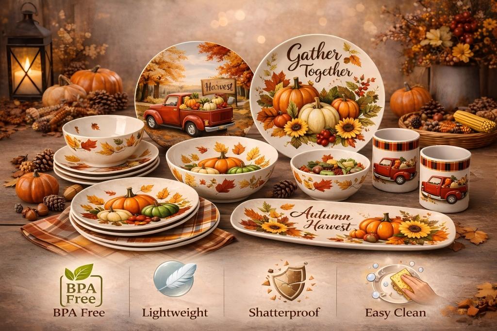 Fall Harvest Pumpkin Melamine Dinnerware Set designed for wholesale and bulk supply. Featuring classic pumpkin and autumn harvest patterns, this melamine dinnerware set is ideal for fall collections, Thanksgiving promotions, and seasonal retail programs. Durable, lightweight, and cost-effective for commercial and large-volume use.