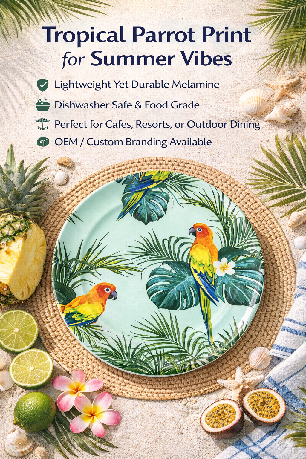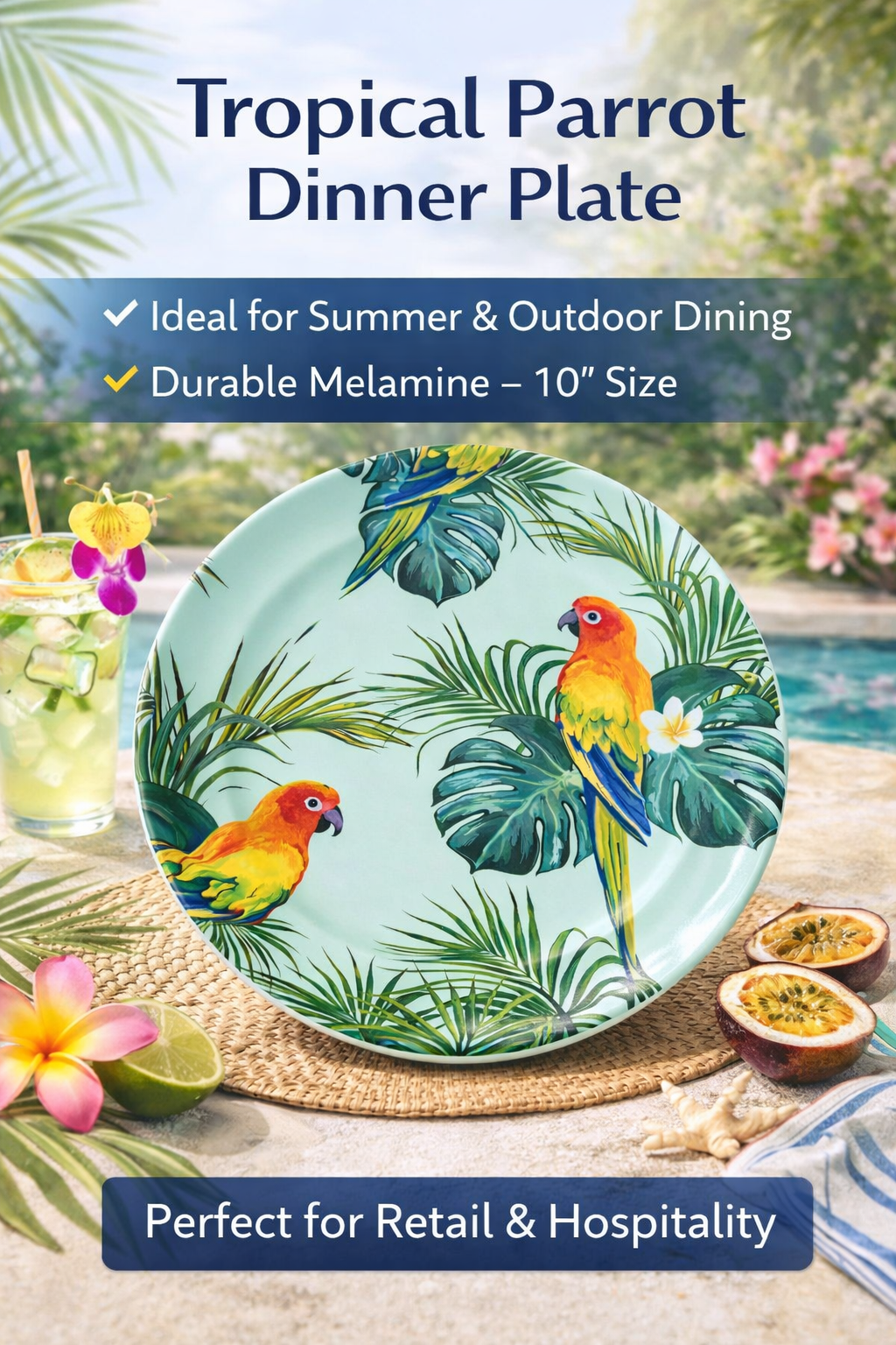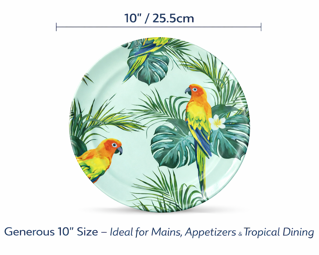 Tropical Parrot Melamine Dinner Plate for Brazil Market