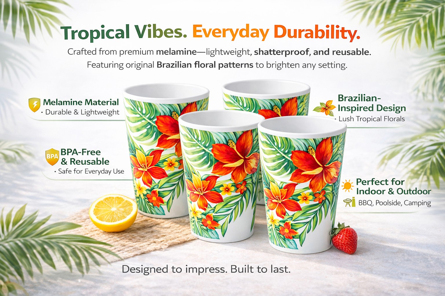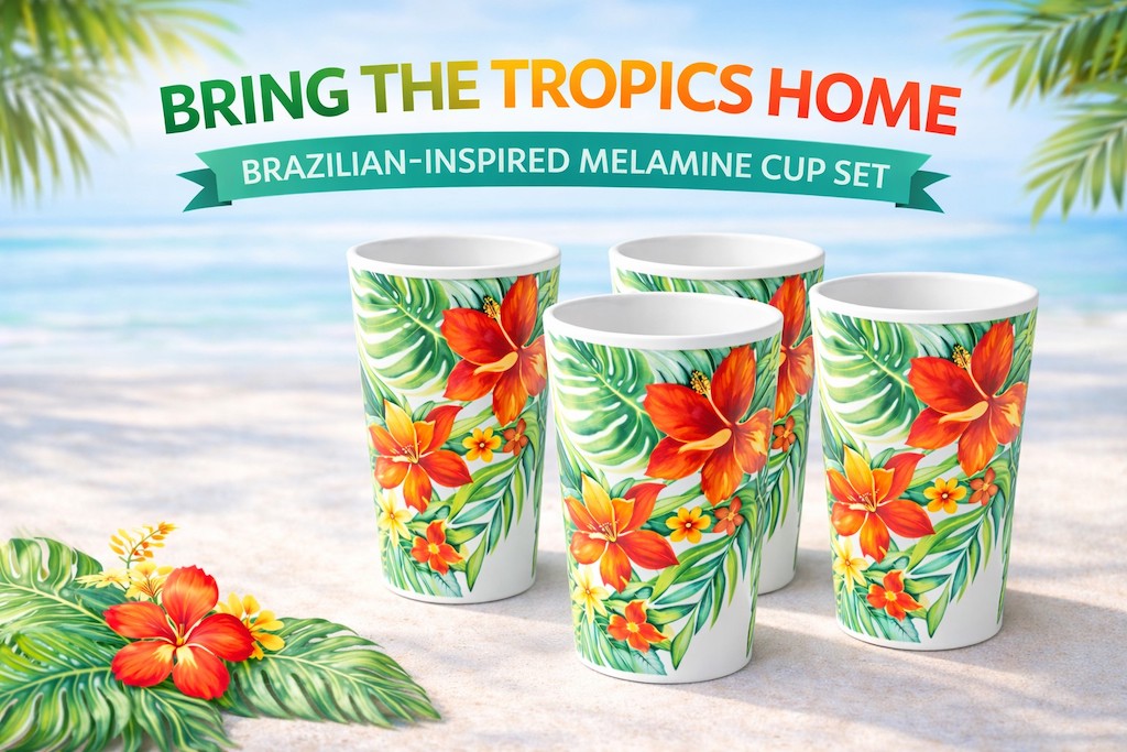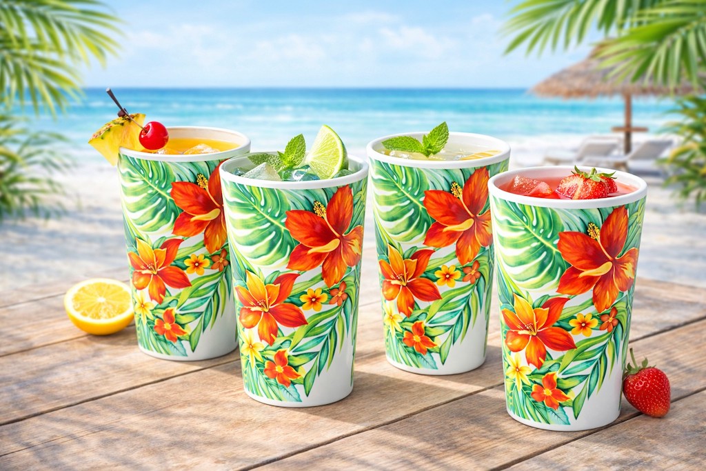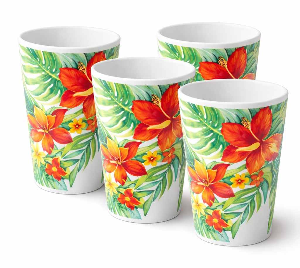 Designed to match with plates, bowls, trays, and other items from the same tropical dinnerware series.