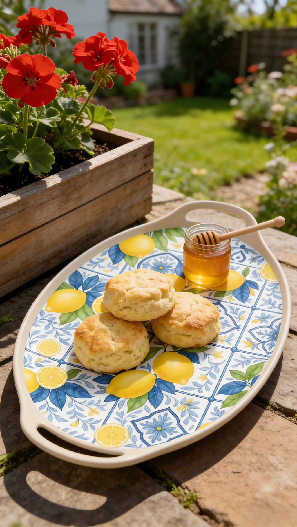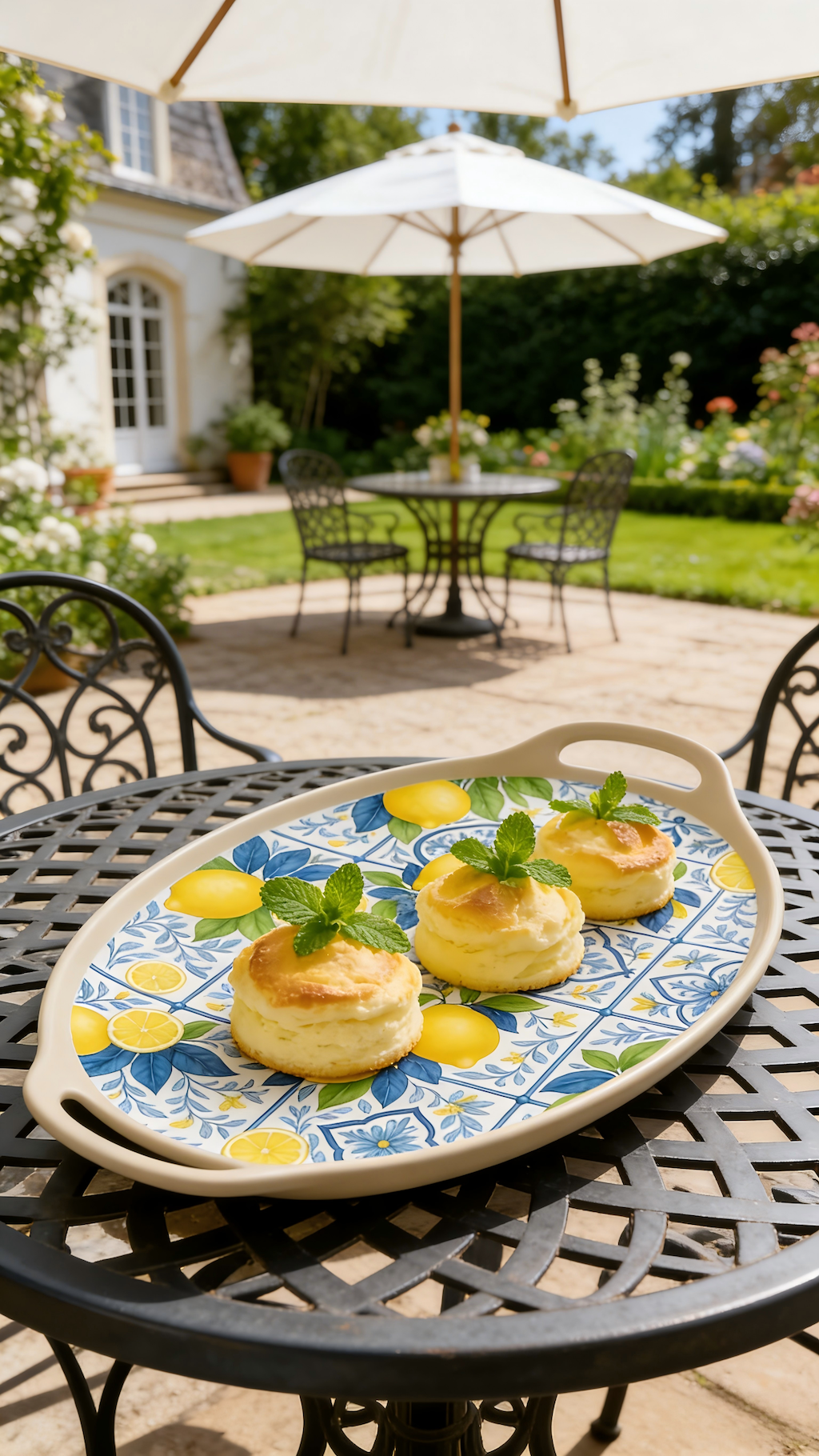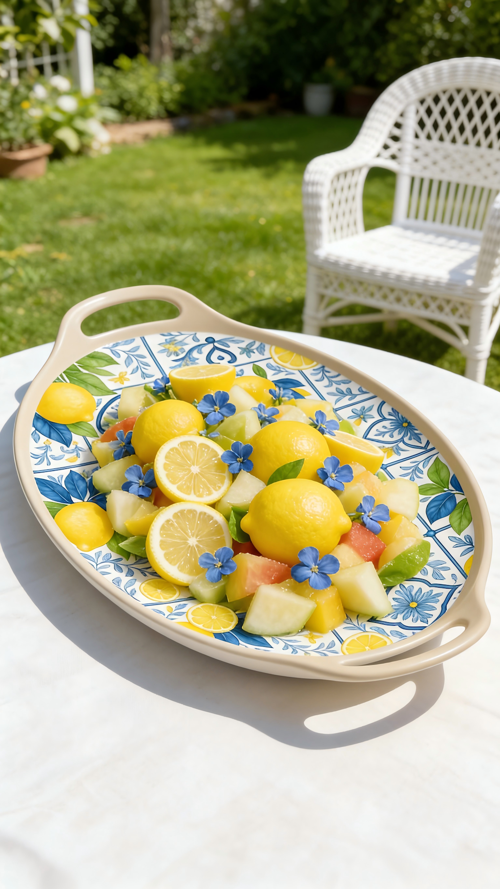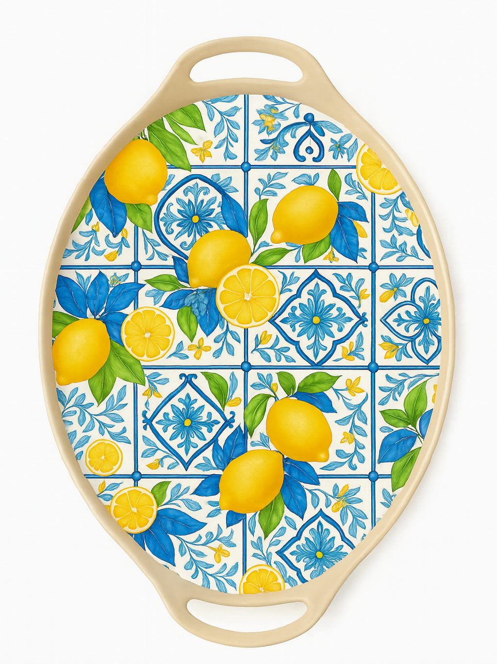 Melamine Serving Tray with classic lemon pattern, inspired by Mediterranean tile-style tableware design