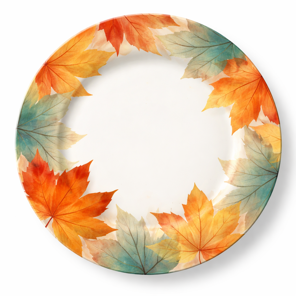 Features vibrant autumn leaves in warm orange, yellow, and teal hues—perfect for elevating your fall table decor.