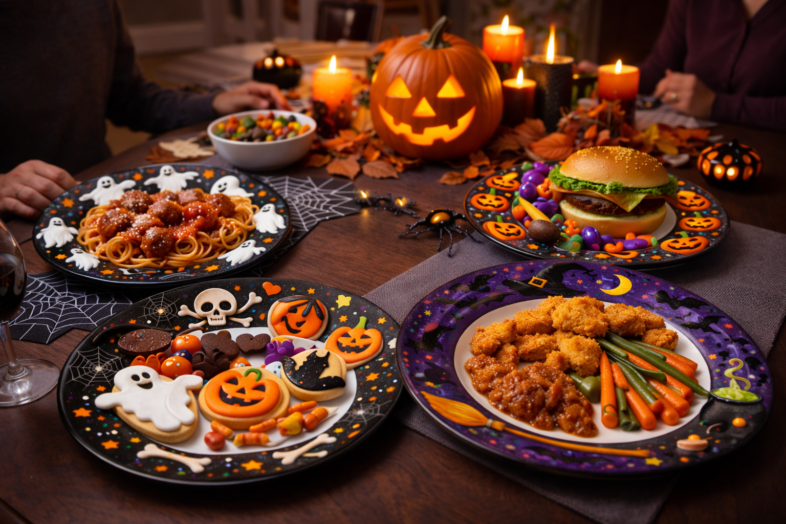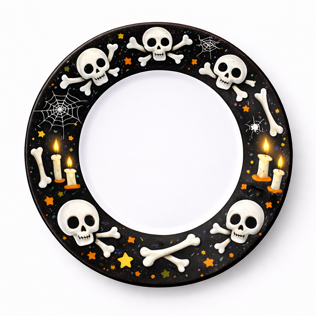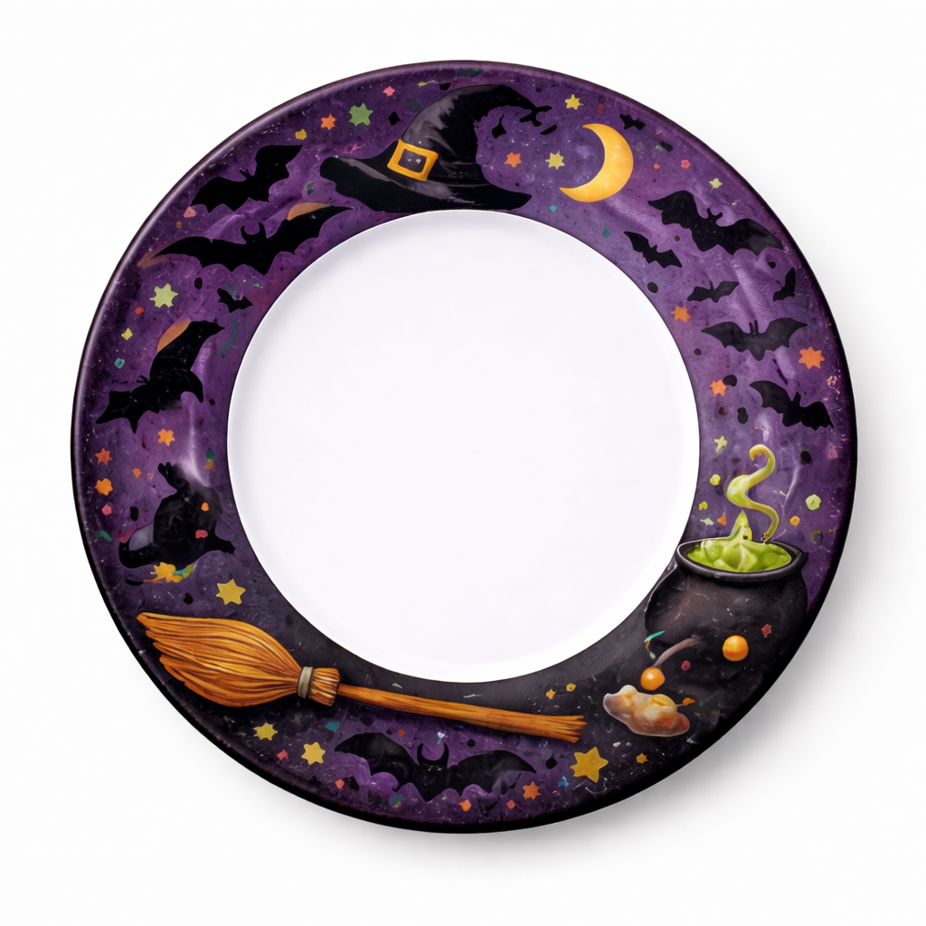 Includes 4 unique designs: Ghost, Pumpkin, Skull, and Witch plates—perfect for Halloween parties and themed events.