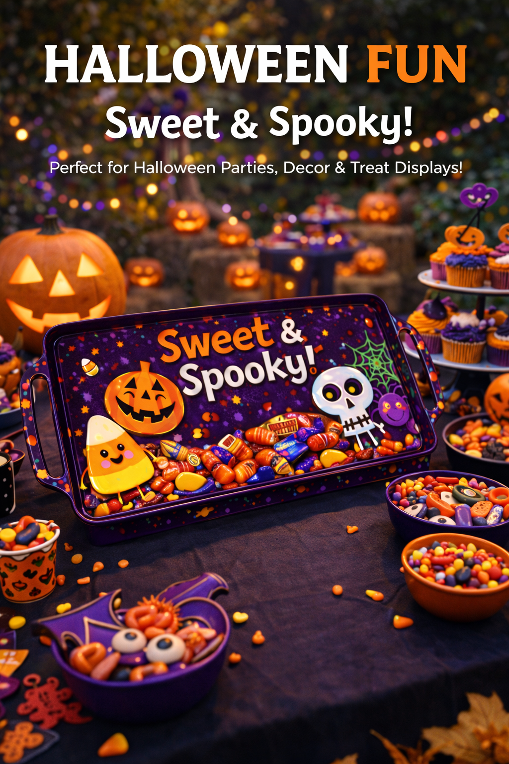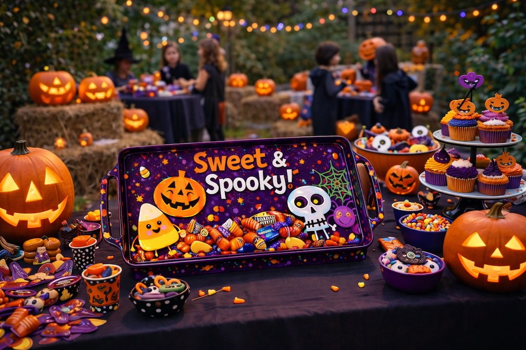 “Sweet & Spooky” themed tray designed for Halloween displays.