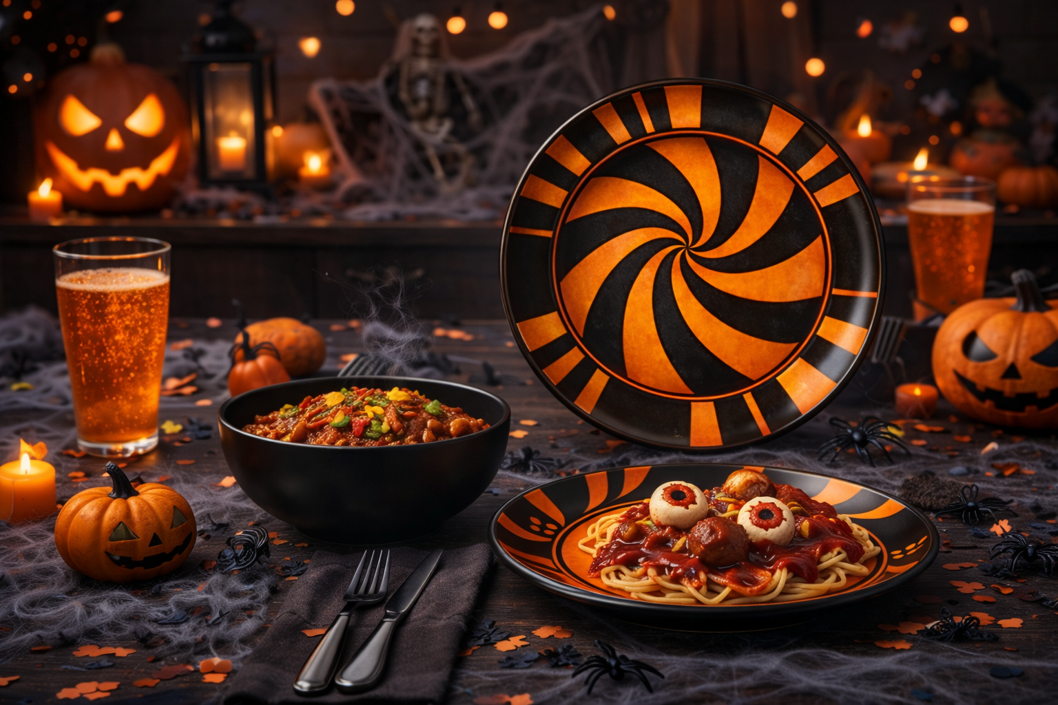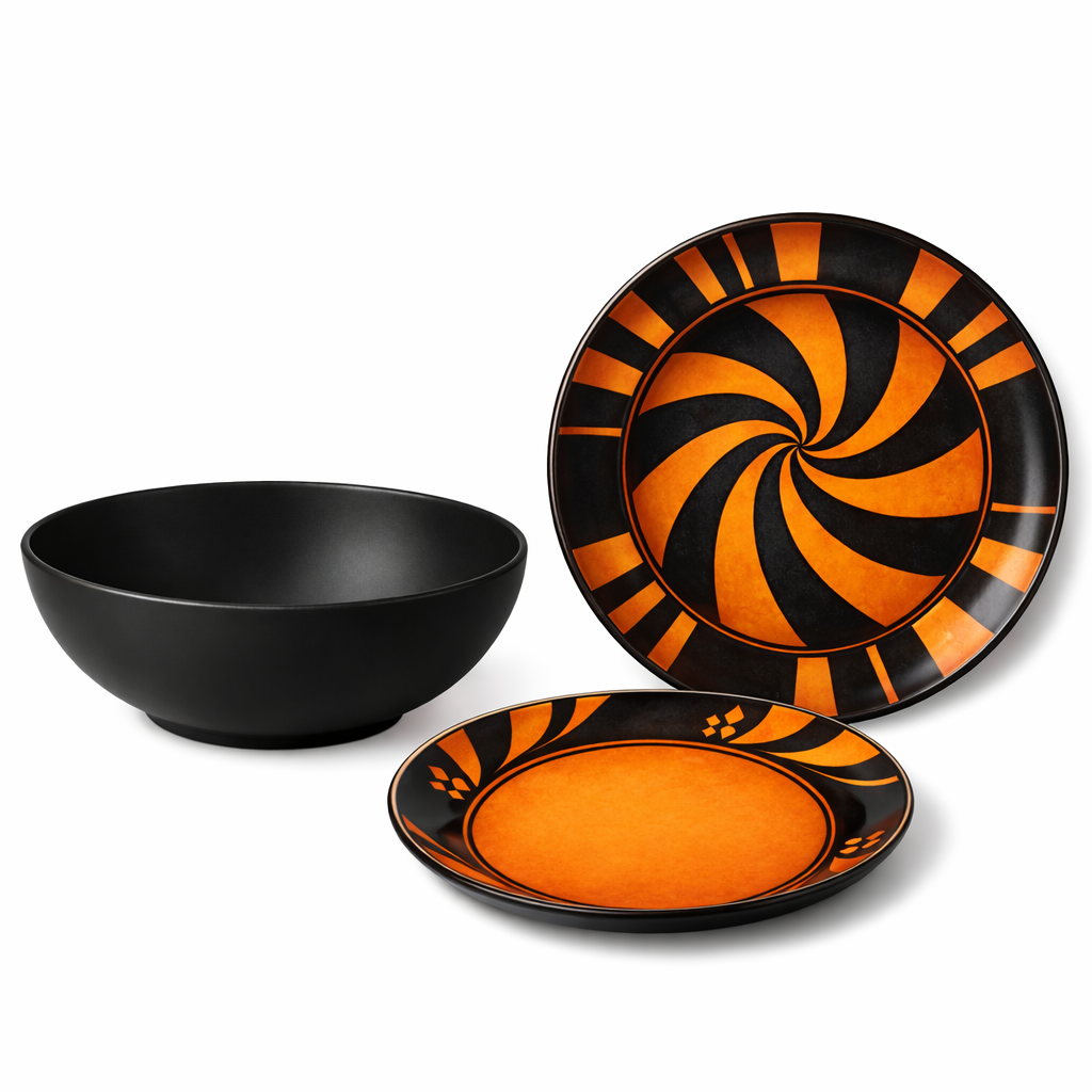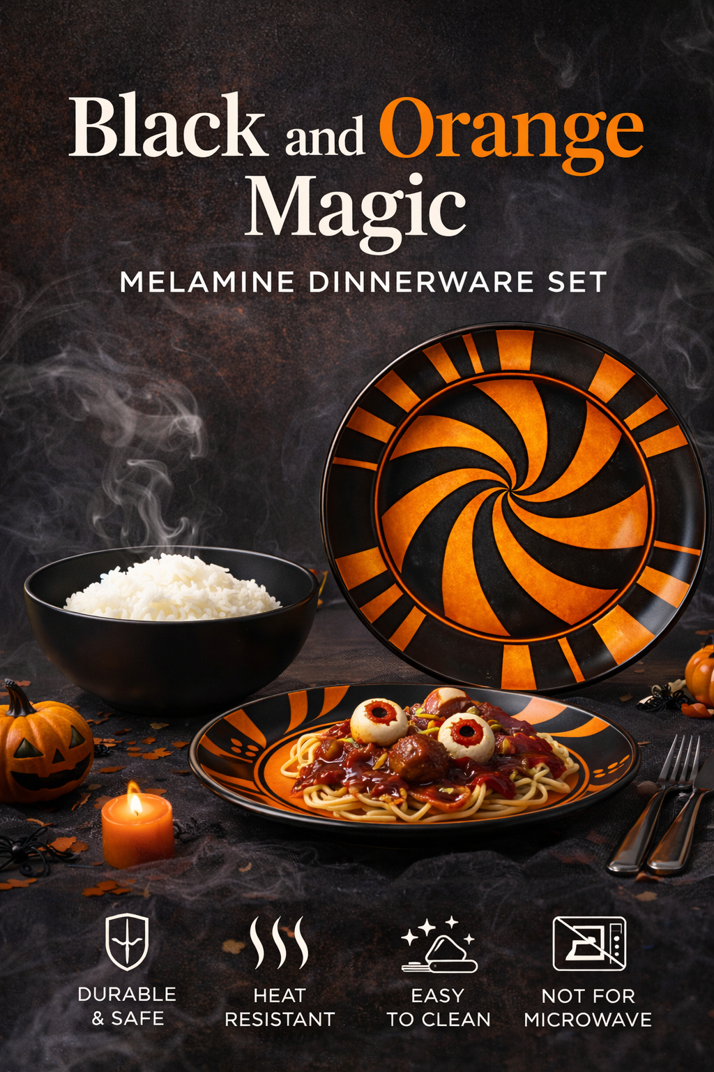 Bold Halloween LookStriking black and orange patterns inspired by classic Halloween graphics.