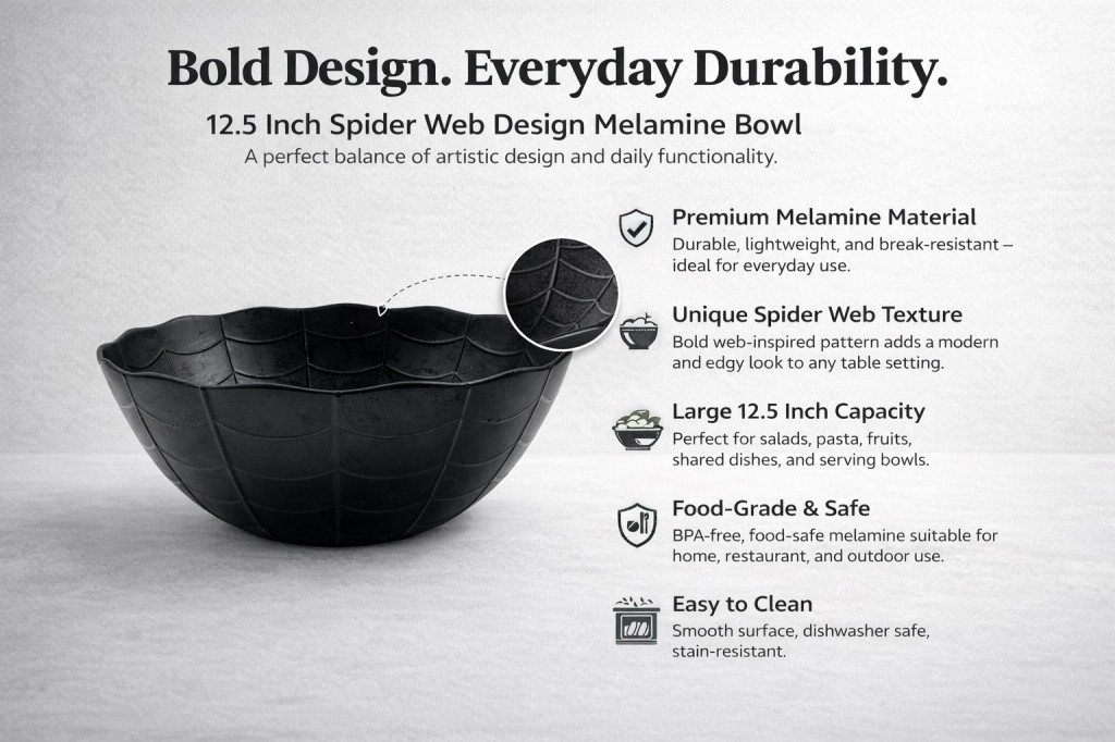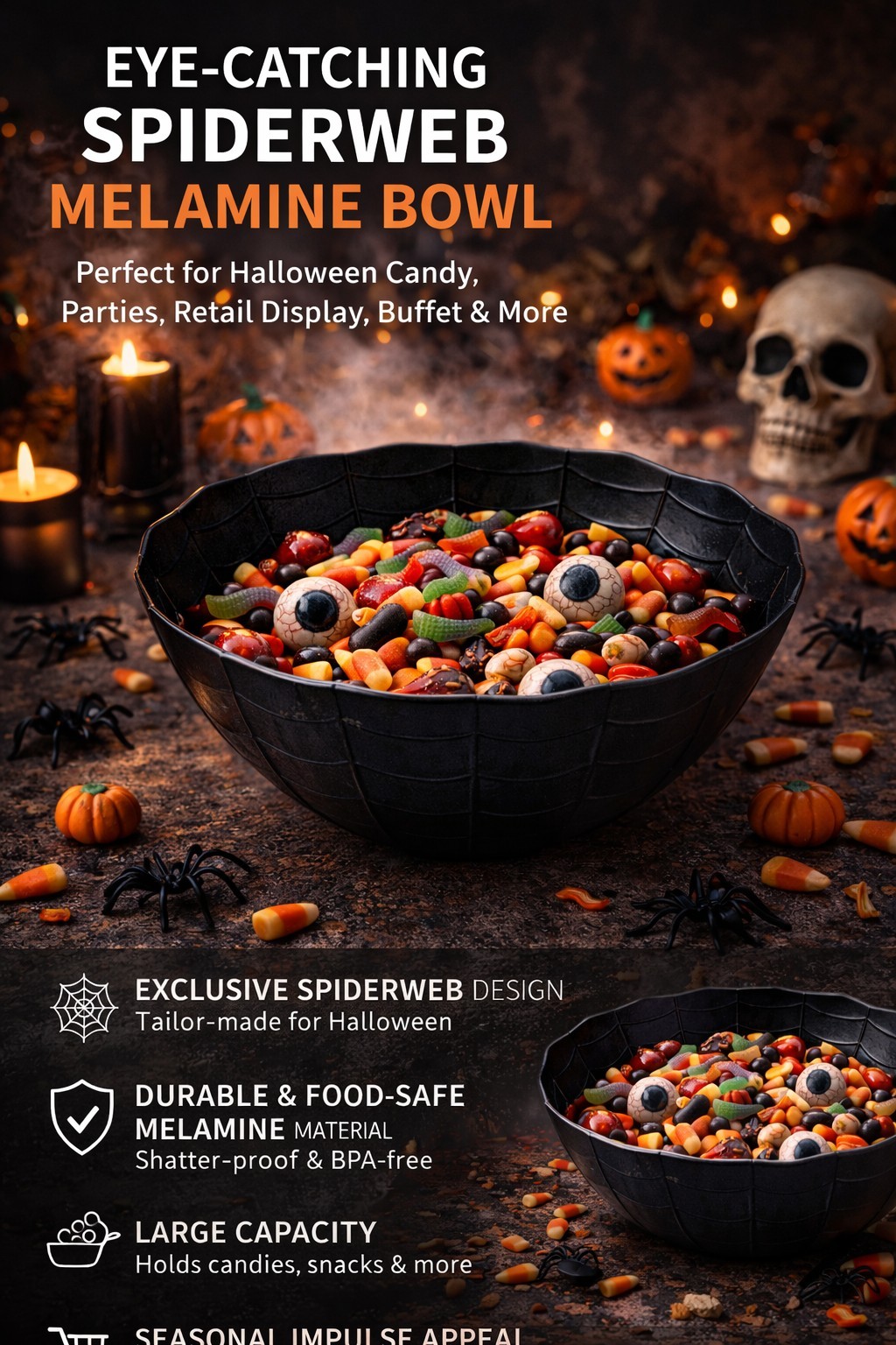 Halloween Spider Web Serving Bowl 12.5 Inch, Melamine Bowl