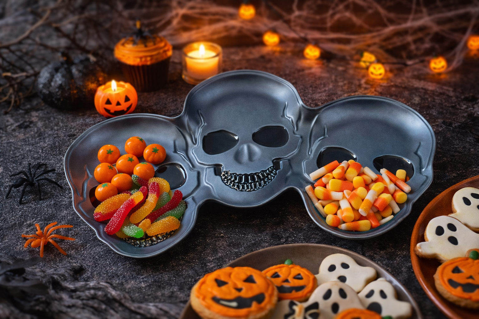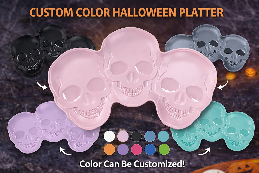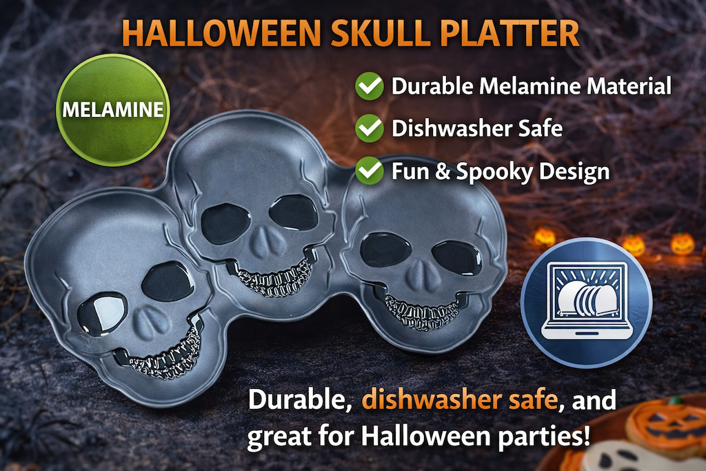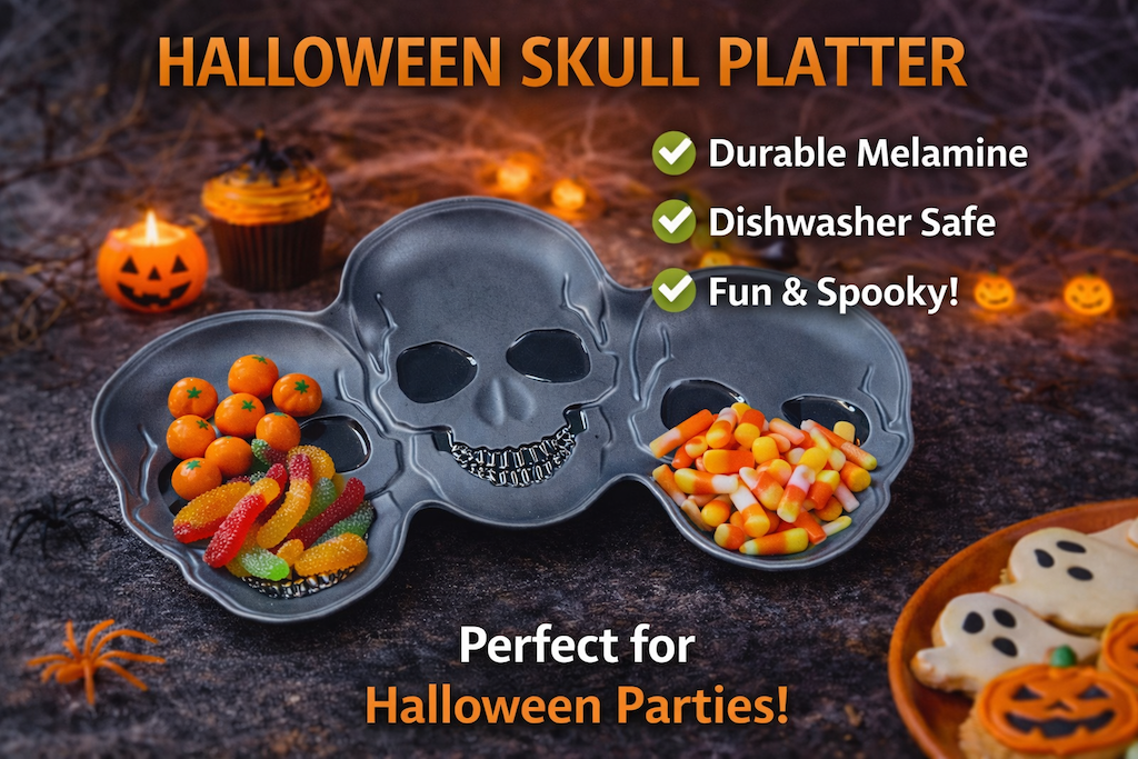 Halloween skull shape serving platter for seasonal programs