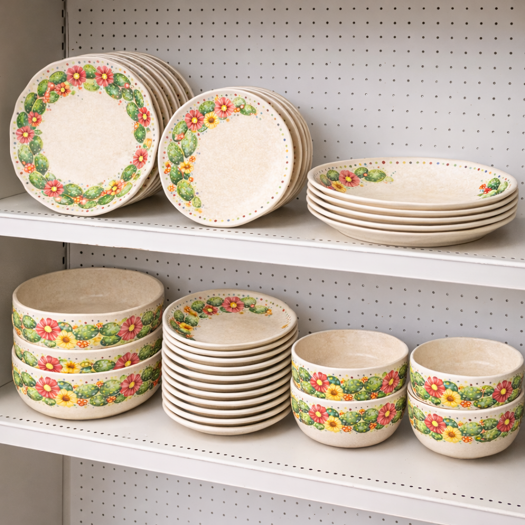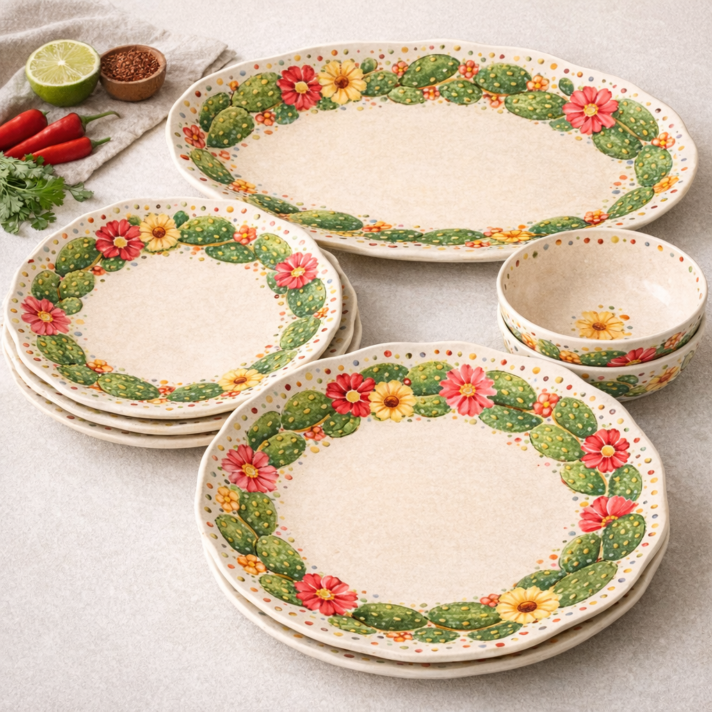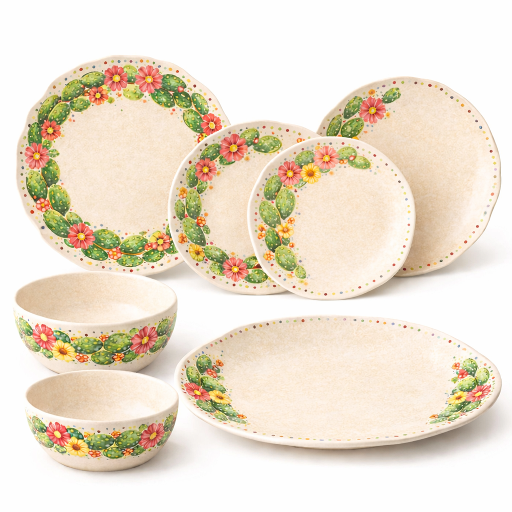 Coordinated melamine tableware collection including plates, bowls and platters