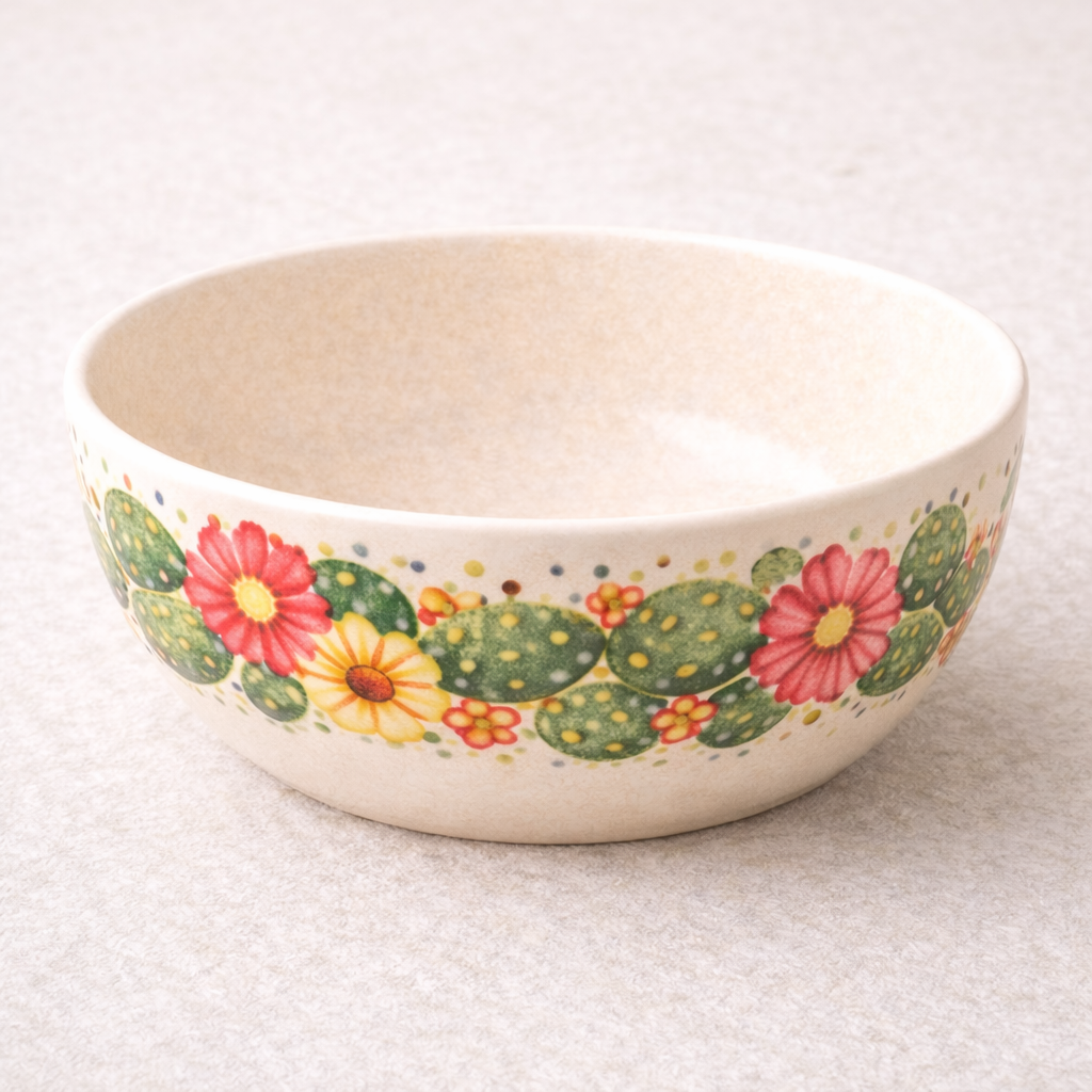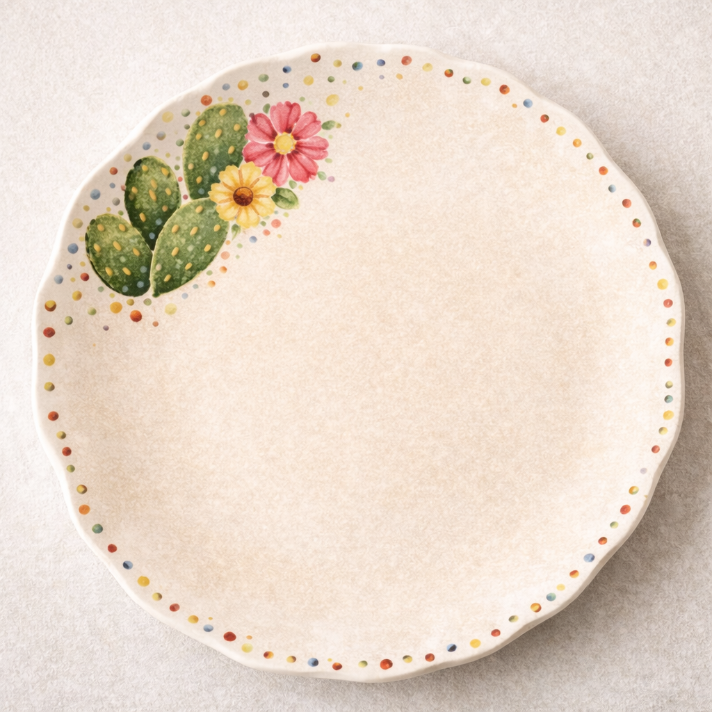 Classic botanical cactus and floral design with decorative border