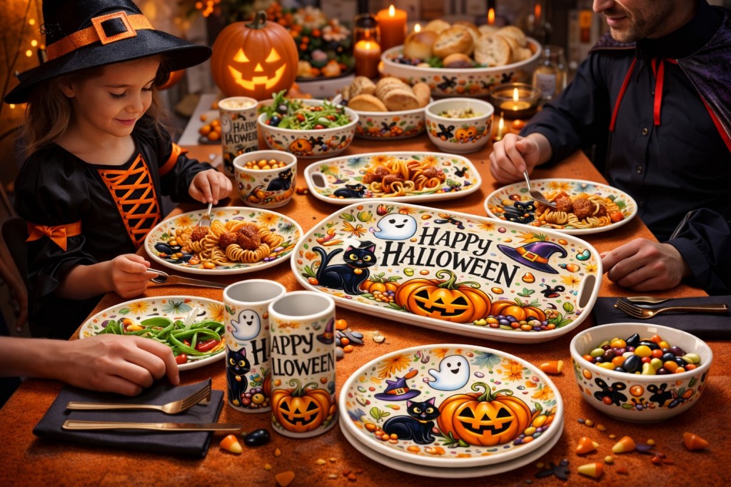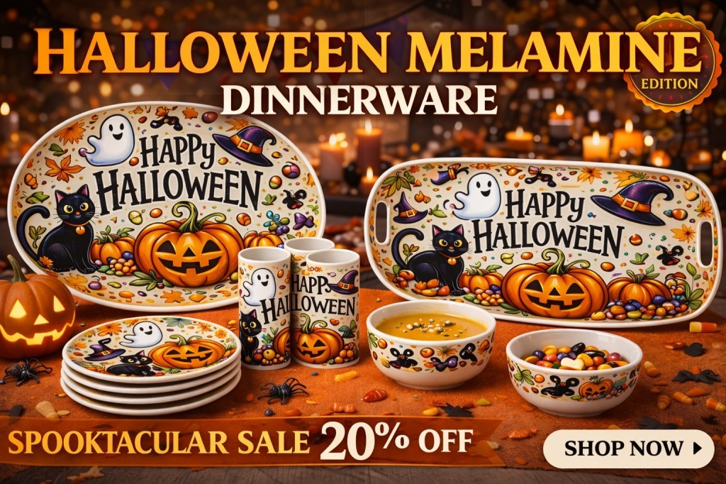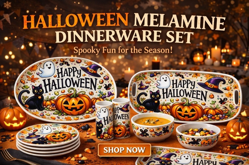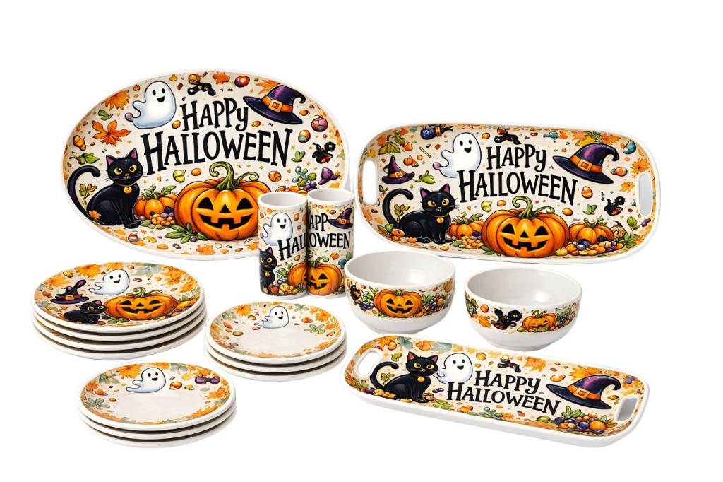 Halloween Melamine Dinnerware Set with Trays & Bowls, Tableware Set