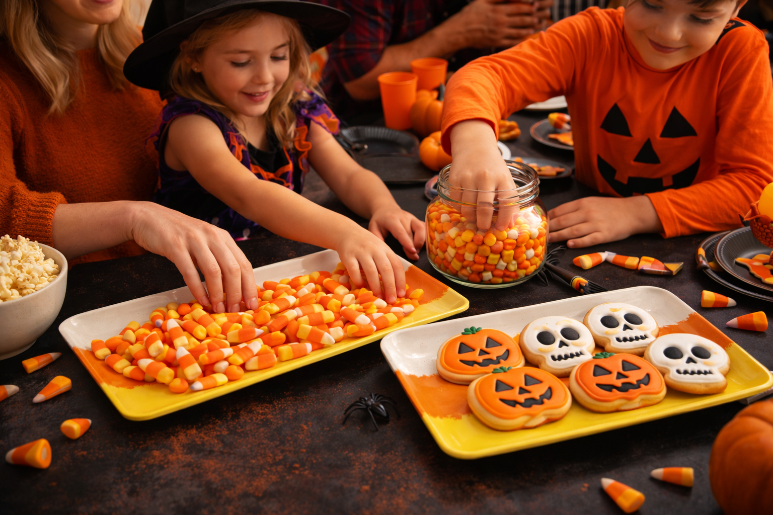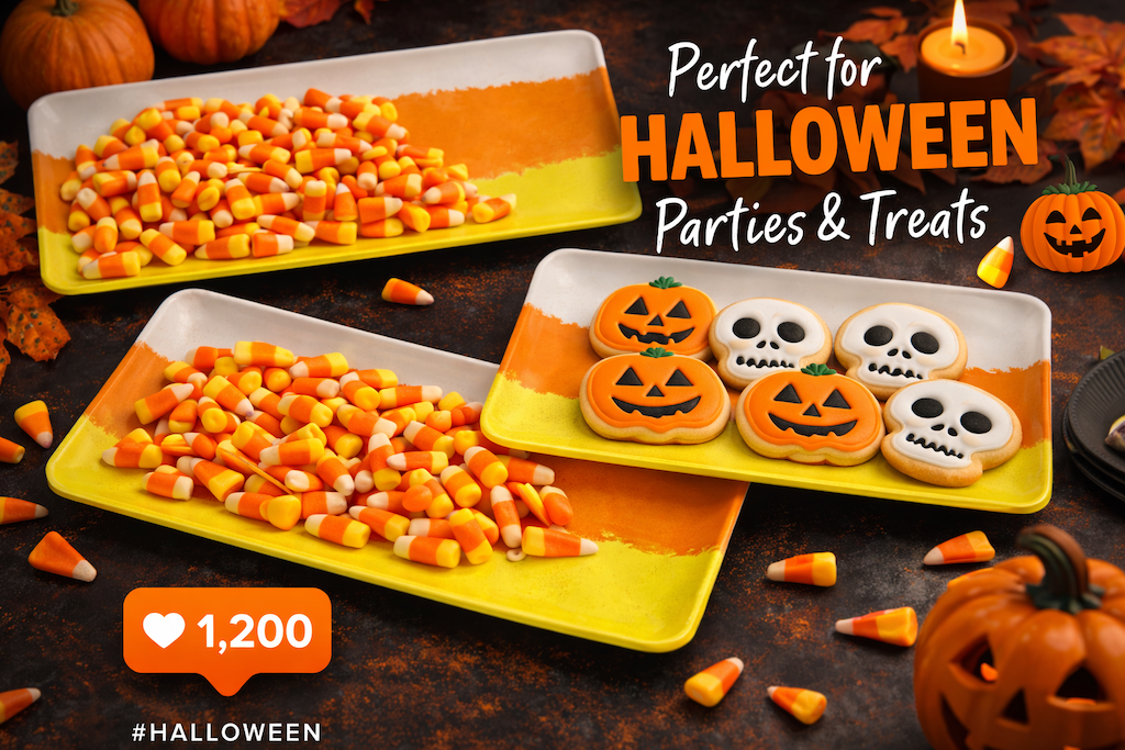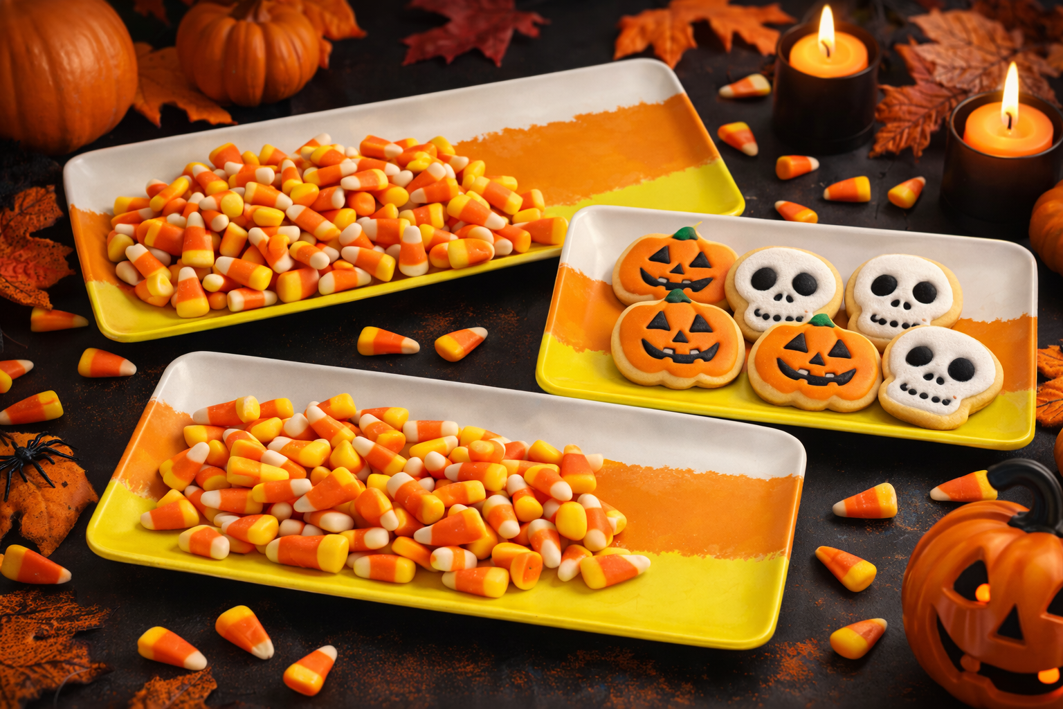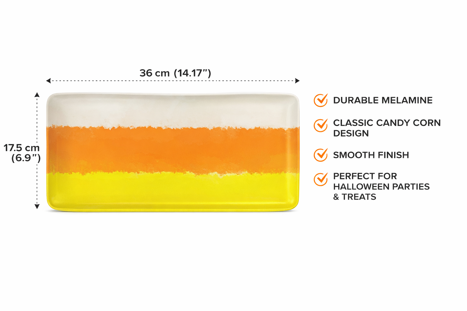 Inspired by iconic candy corn colors, this festive platter adds instant Halloween charm to your table.