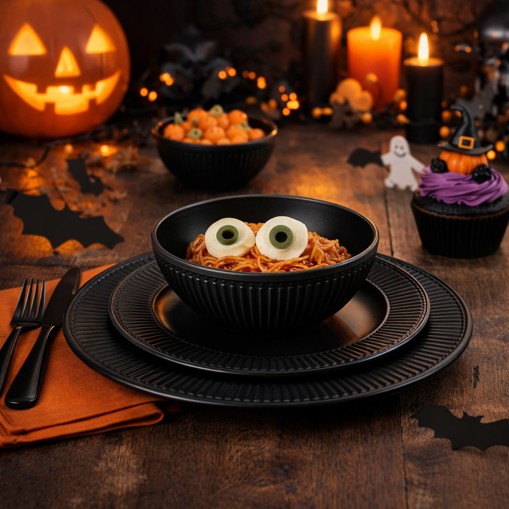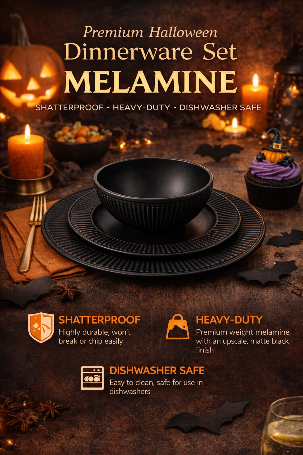 Matte black finish with embossed texture, ideal for Halloween and seasonal displays.