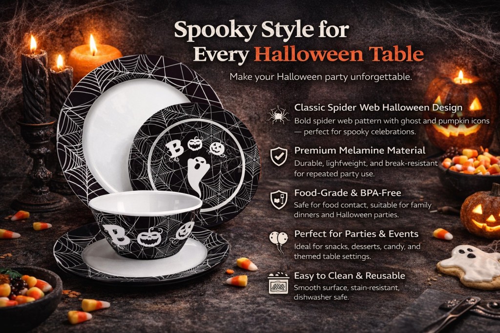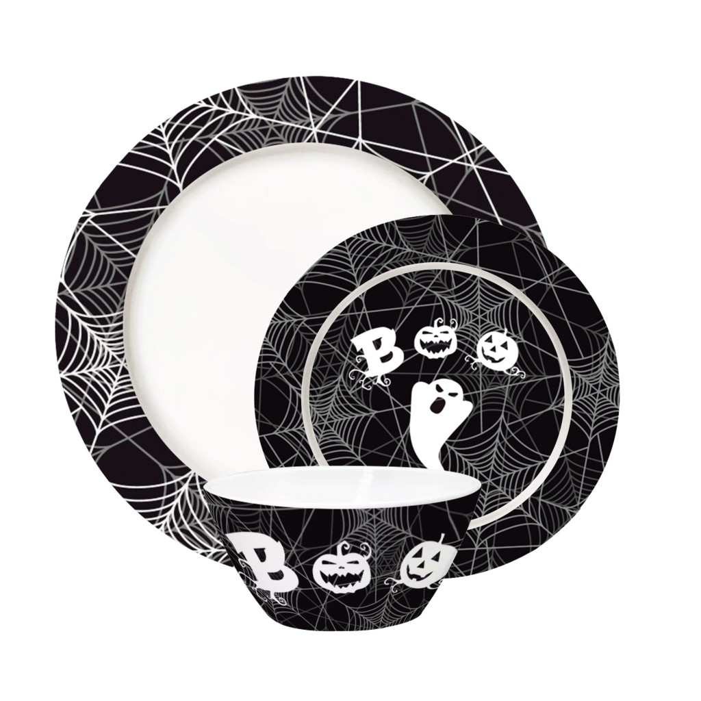 Halloween Spider Web Melamine Dinnerware Set Plates Bowls