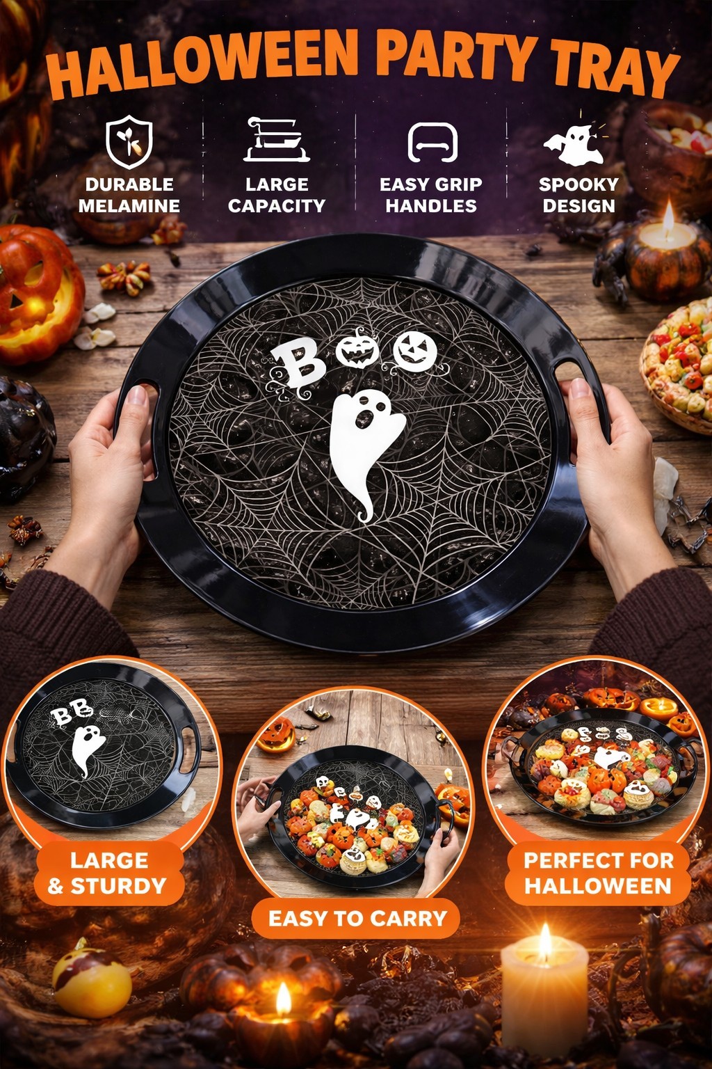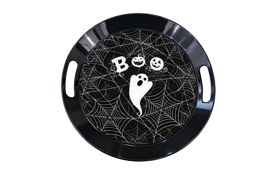 Halloween Spider Web Round Melamine Serving Tray with Handles