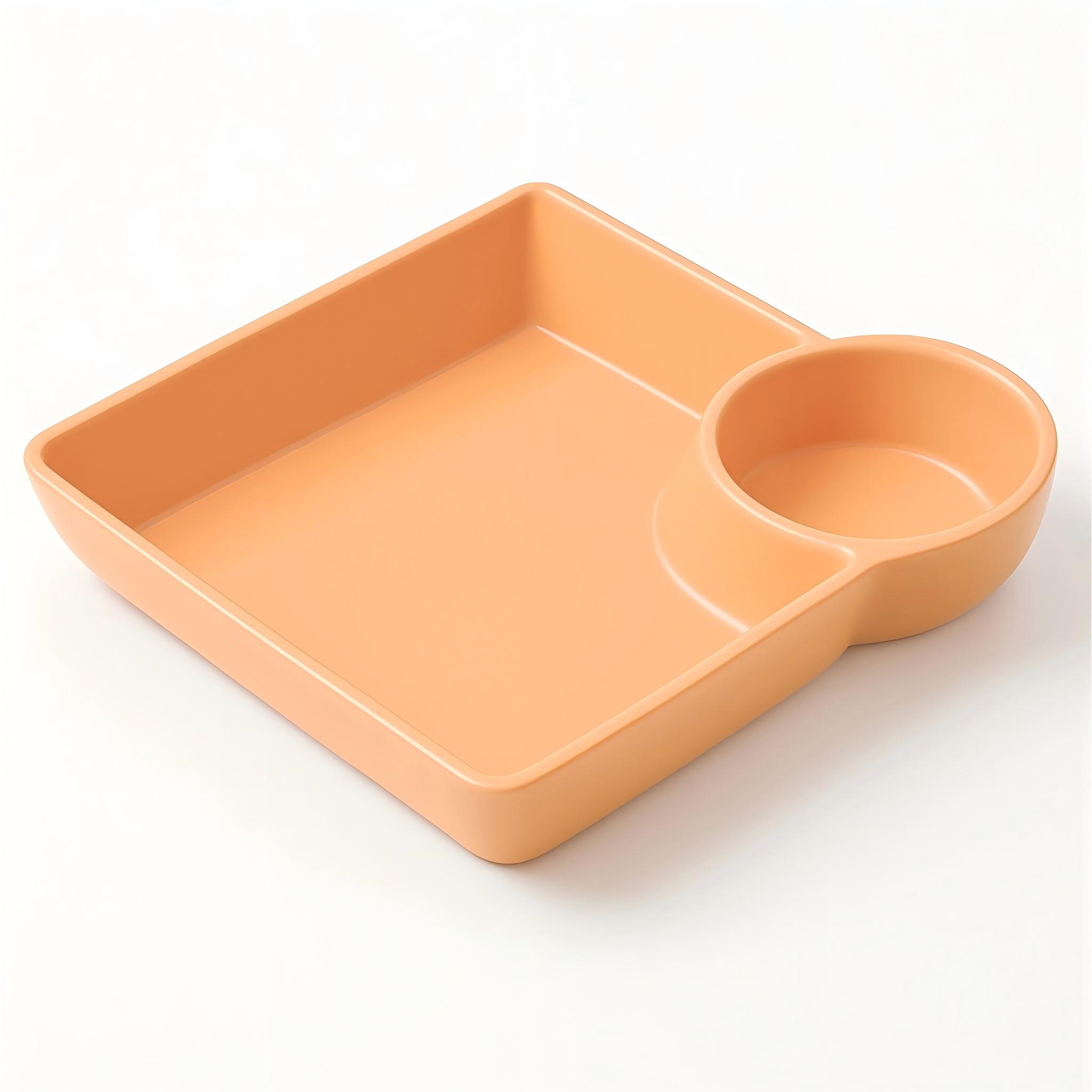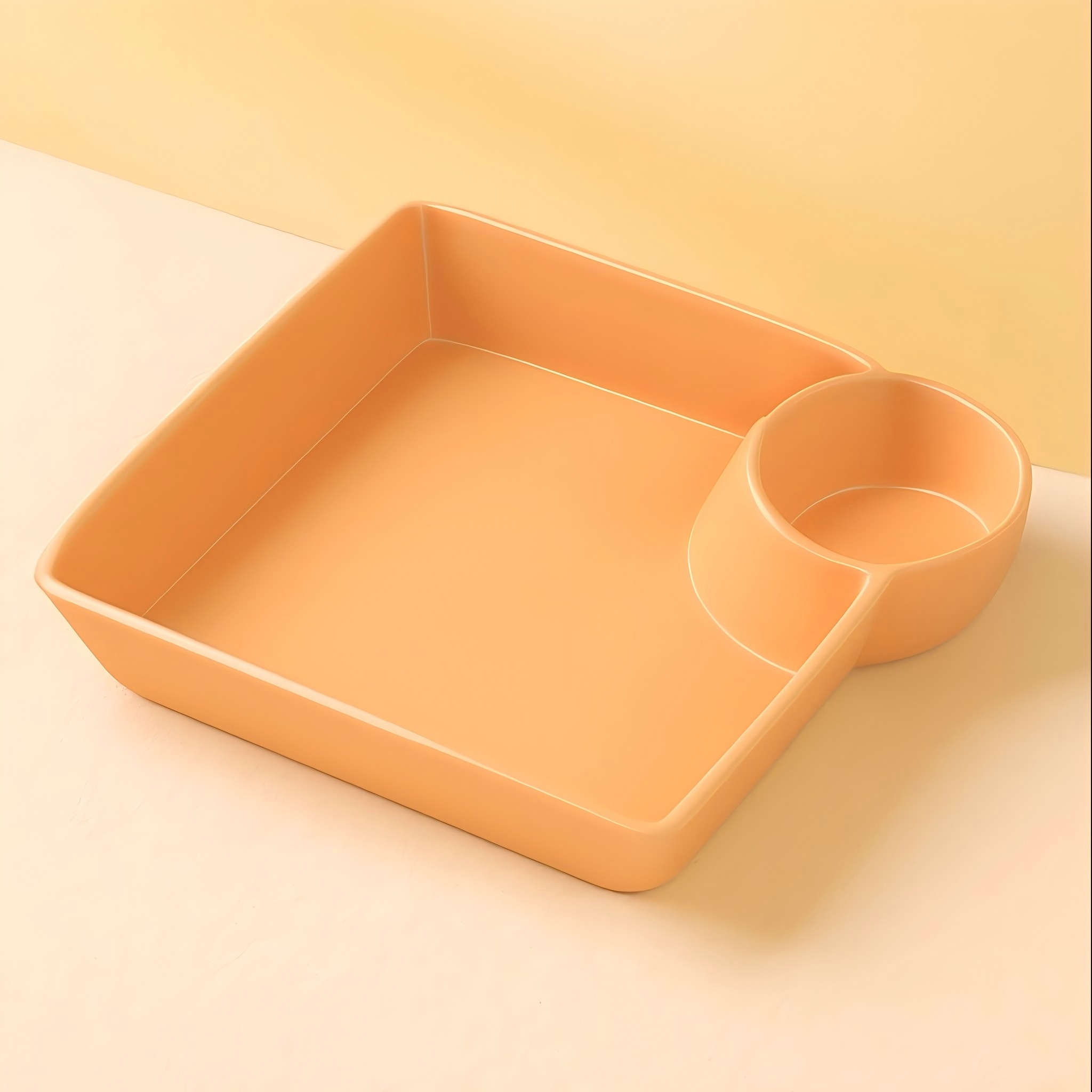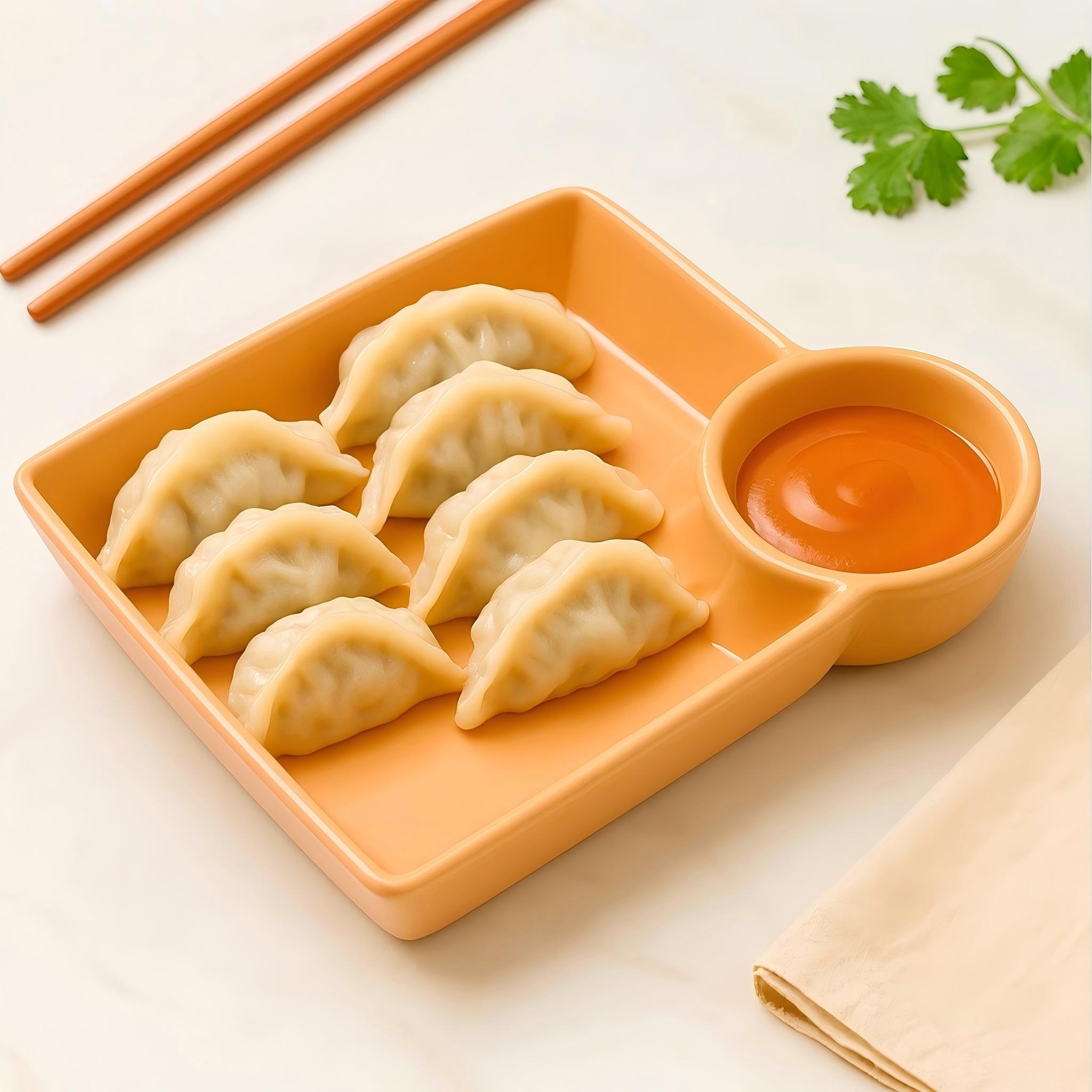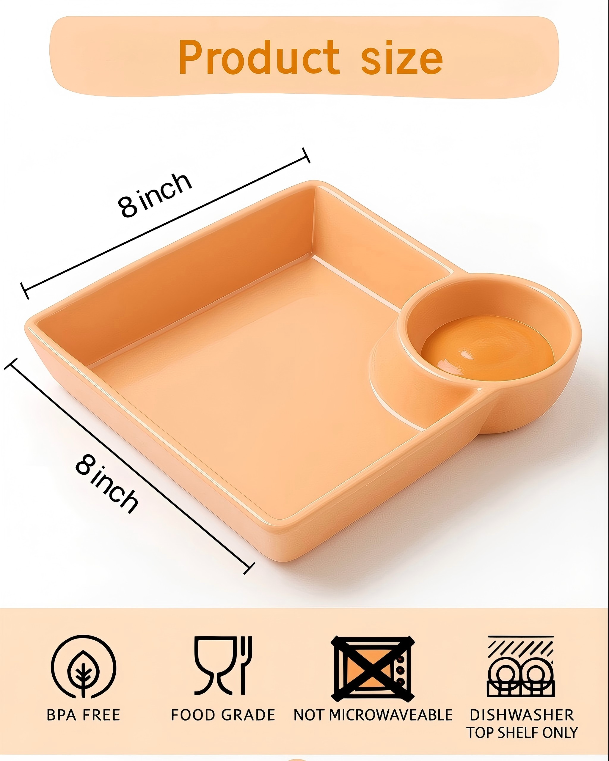 This 8-inch melamine sauce tray features a modern divided design with a built-in dip bowl, allowing you to serve sauces, snacks, or appetizers neatly in one tray. Made from high-quality melamine, it is lightweight, durable, and resistant to breakage, making it ideal for everyday use.