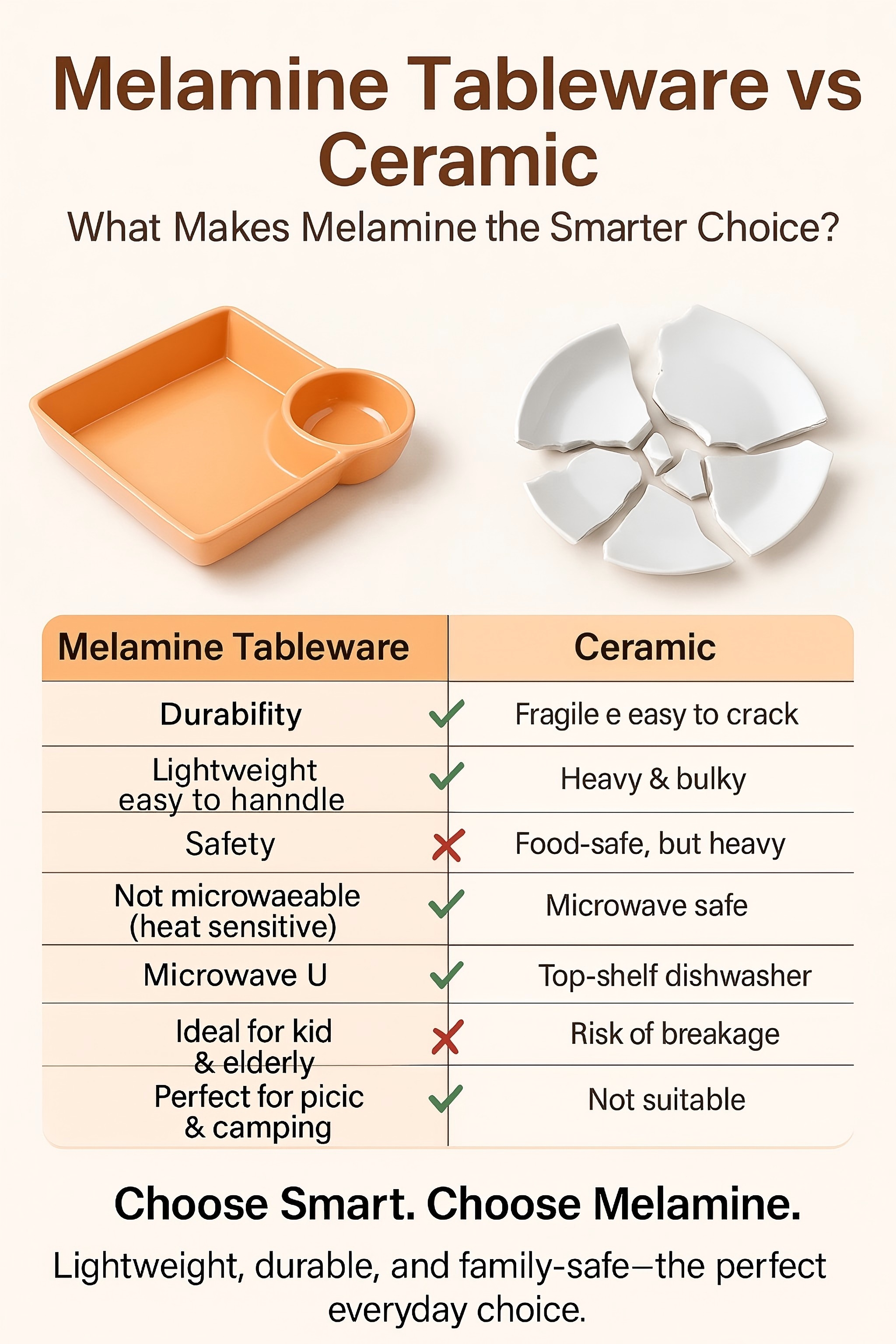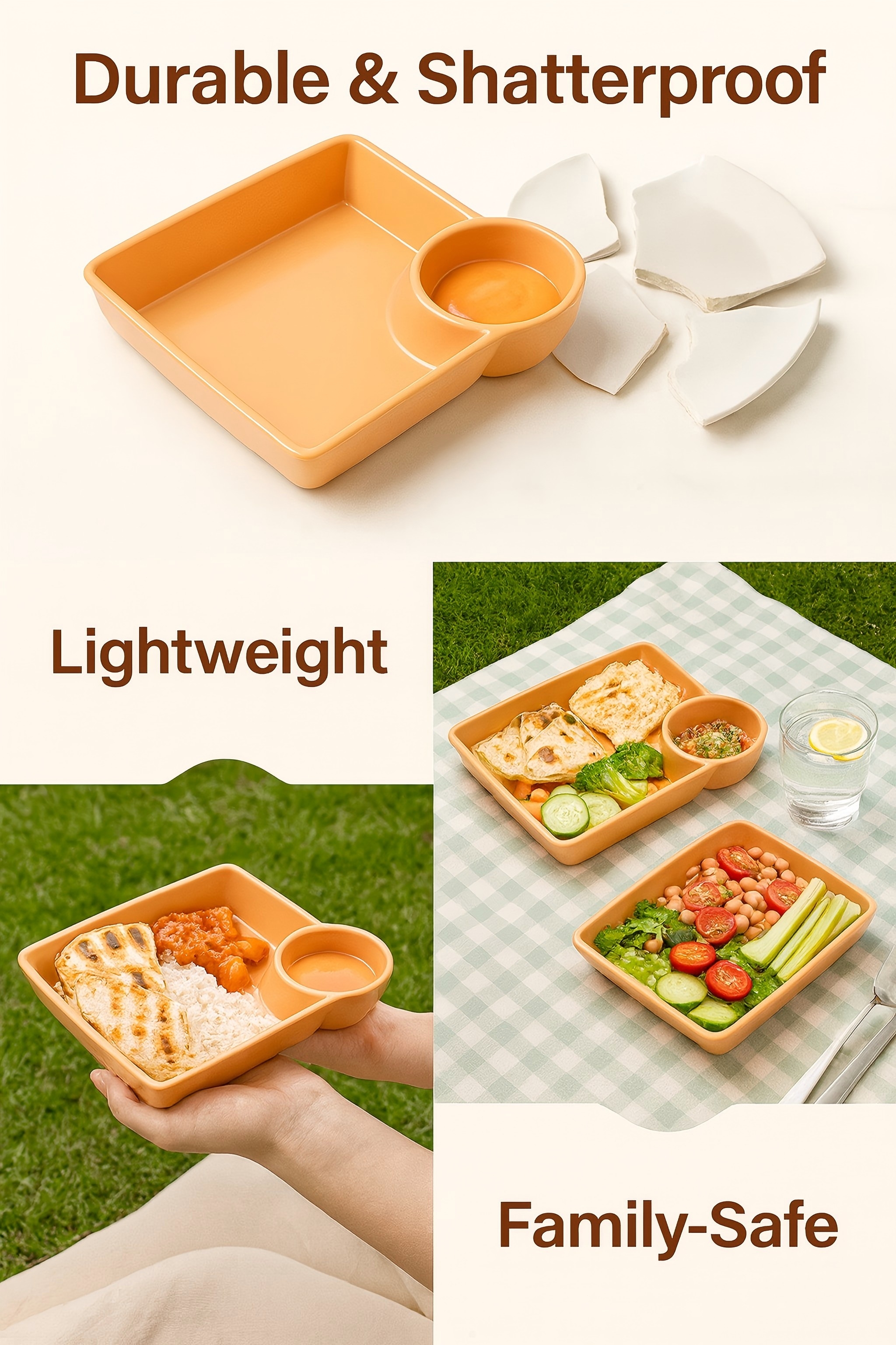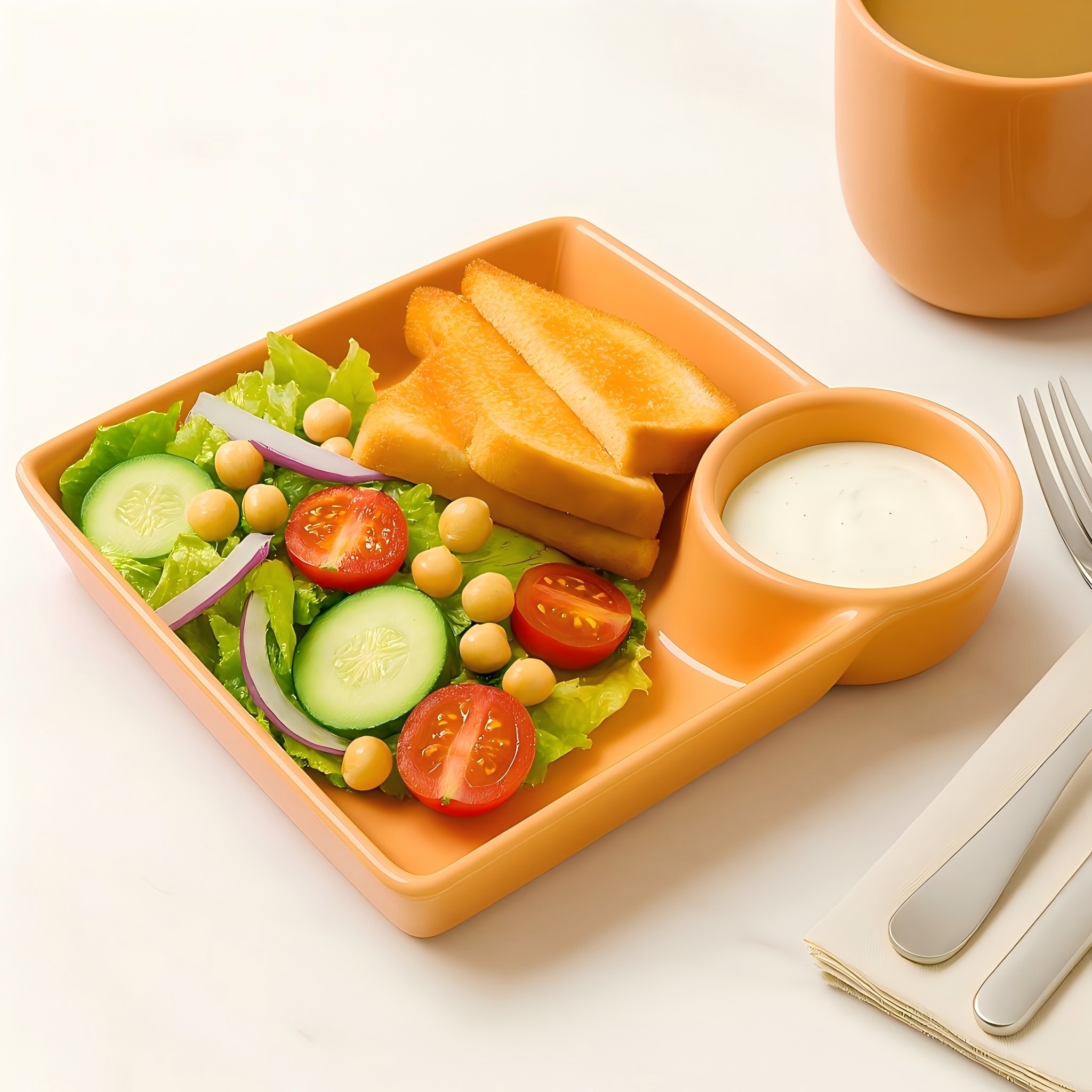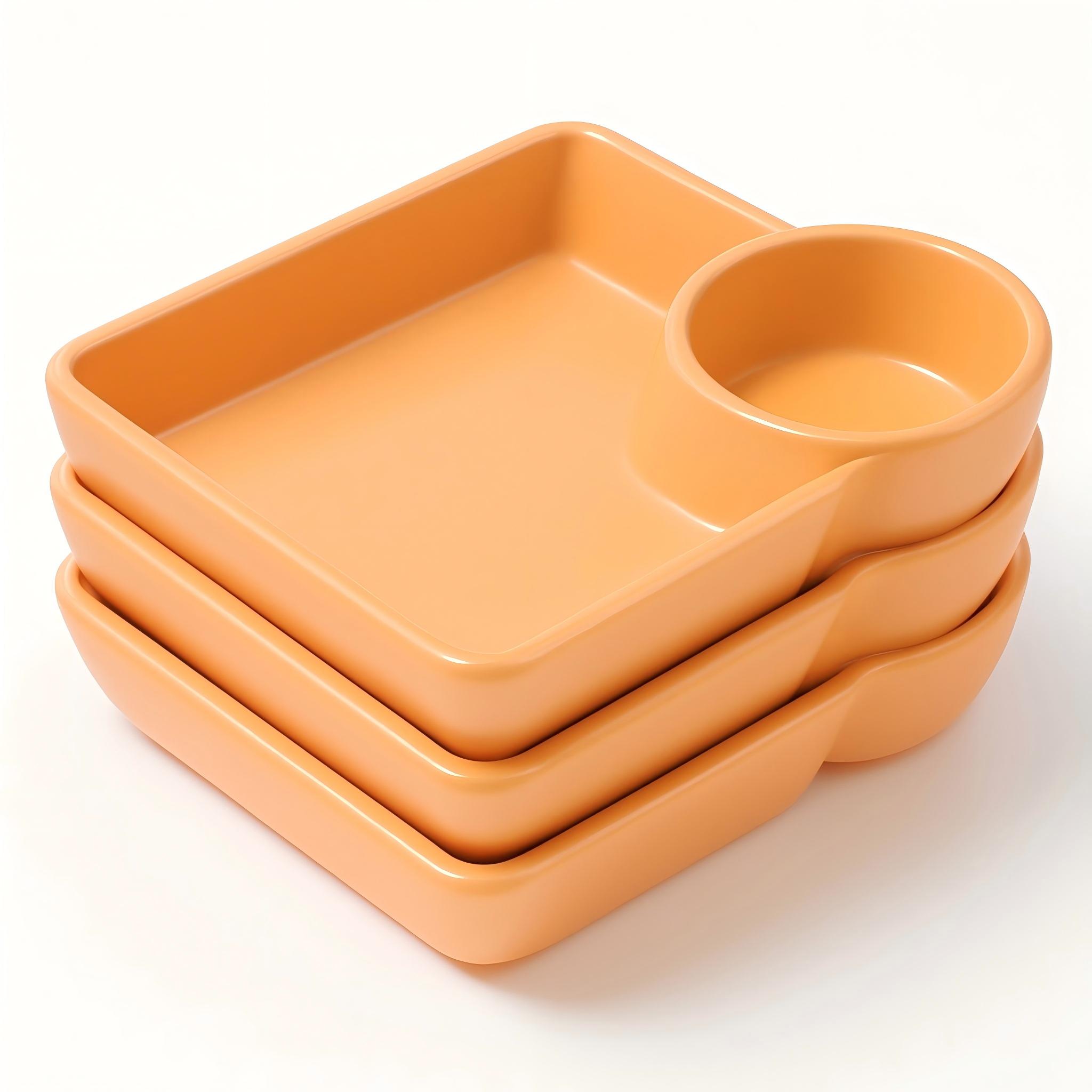 This 8-inch melamine sauce tray features a modern divided design with a built-in dip bowl, allowing you to serve sauces, snacks, or appetizers neatly in one tray. Made from high-quality melamine, it is lightweight, durable, and resistant to breakage, making it ideal for everyday use.