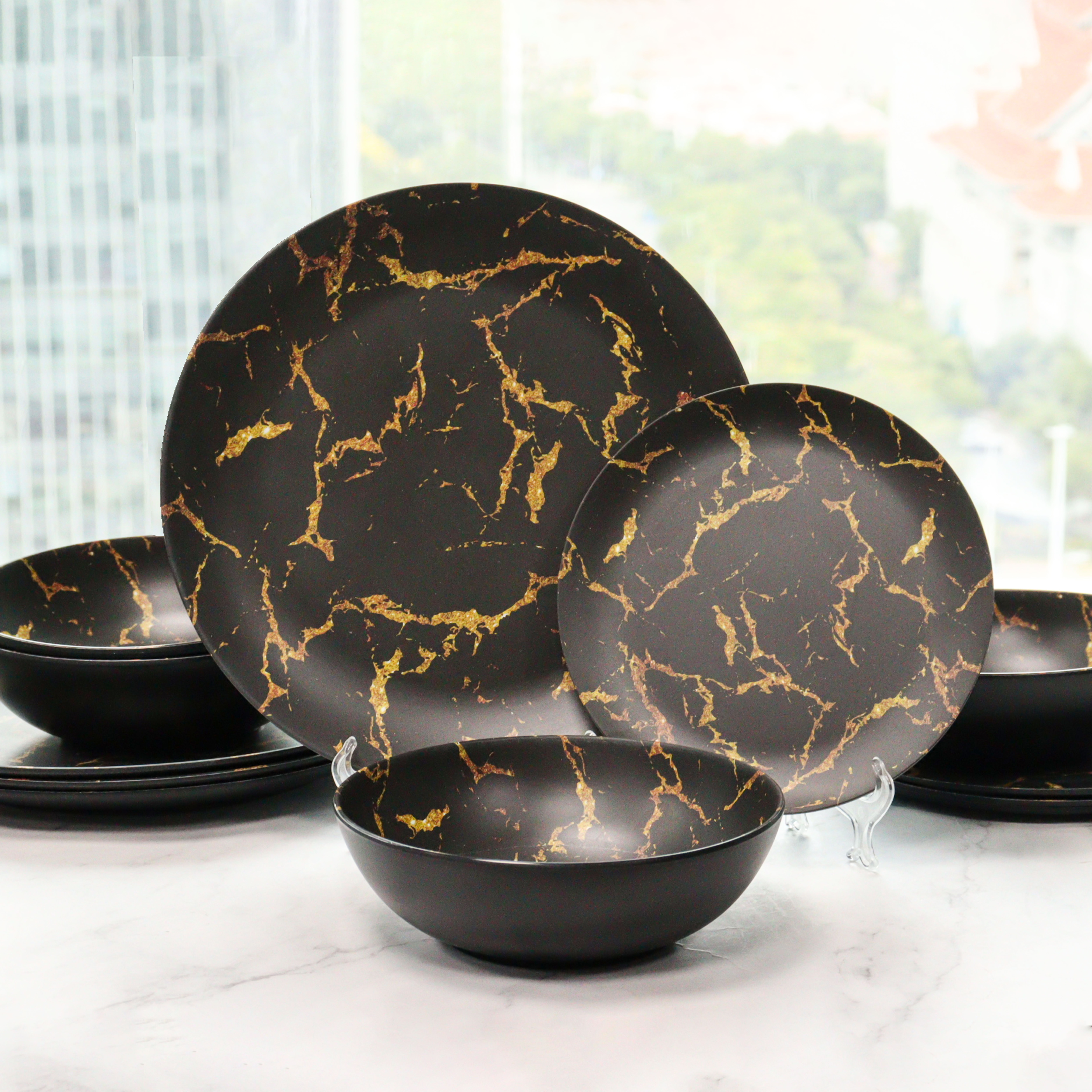 Black base with elegant gold veining for a premium stone-inspired look.