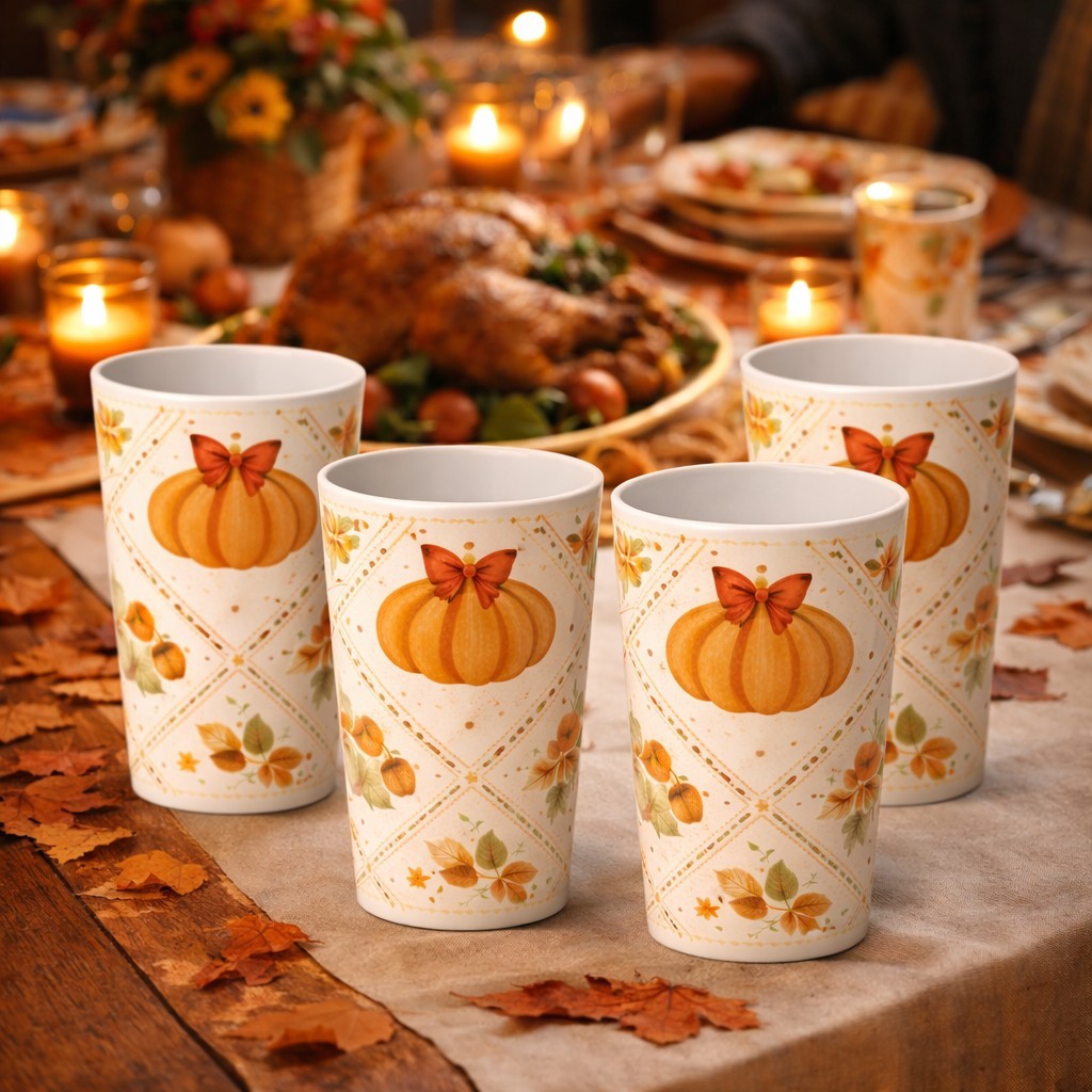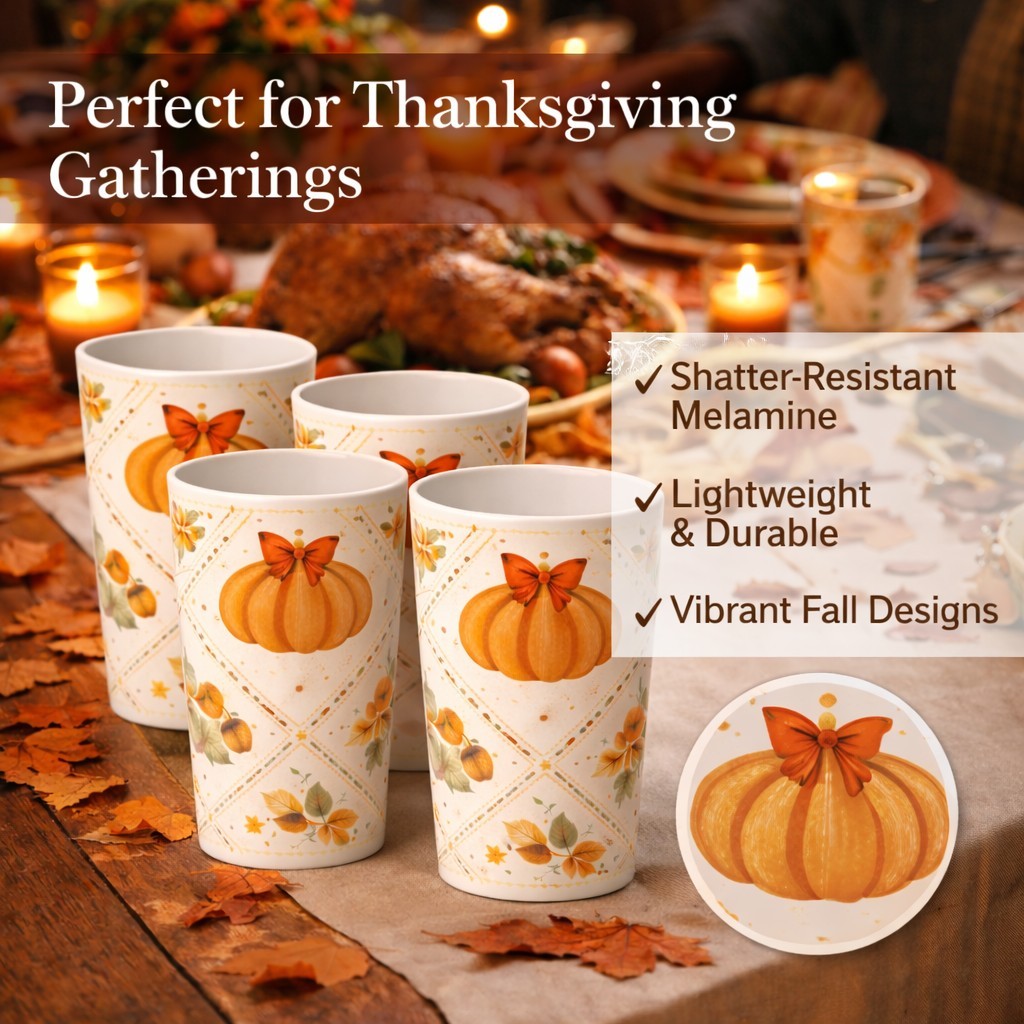 Melamine Tumbler Cup Pumpkin Fall Thanksgiving Drinkware