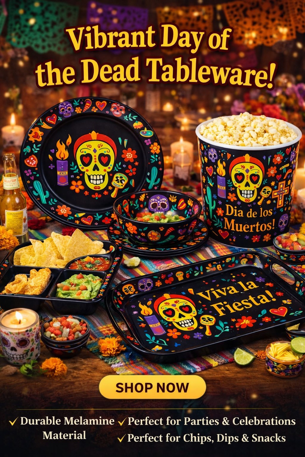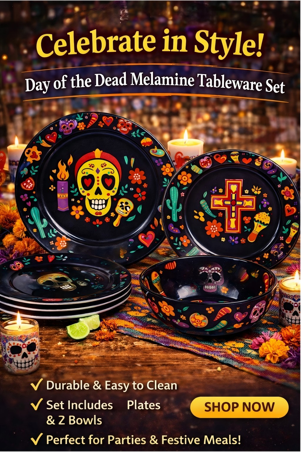 Day of the Dead Skull 12-Piece Melamine Dinnerware Set