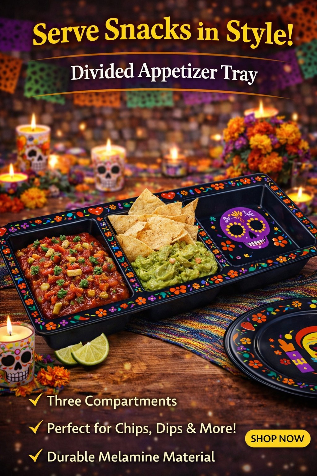 Day of the Dead Skull Melamine Divided Tray