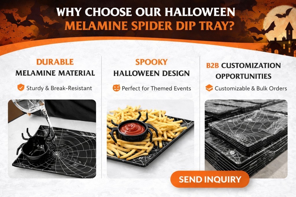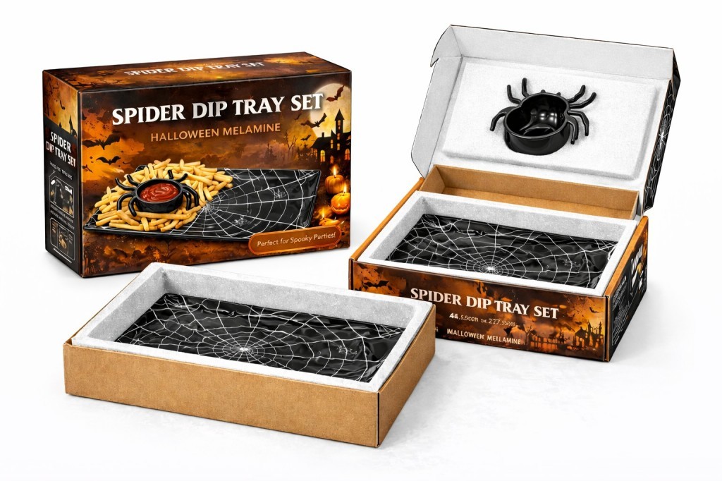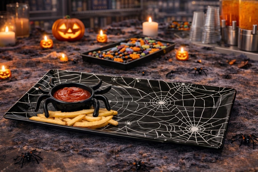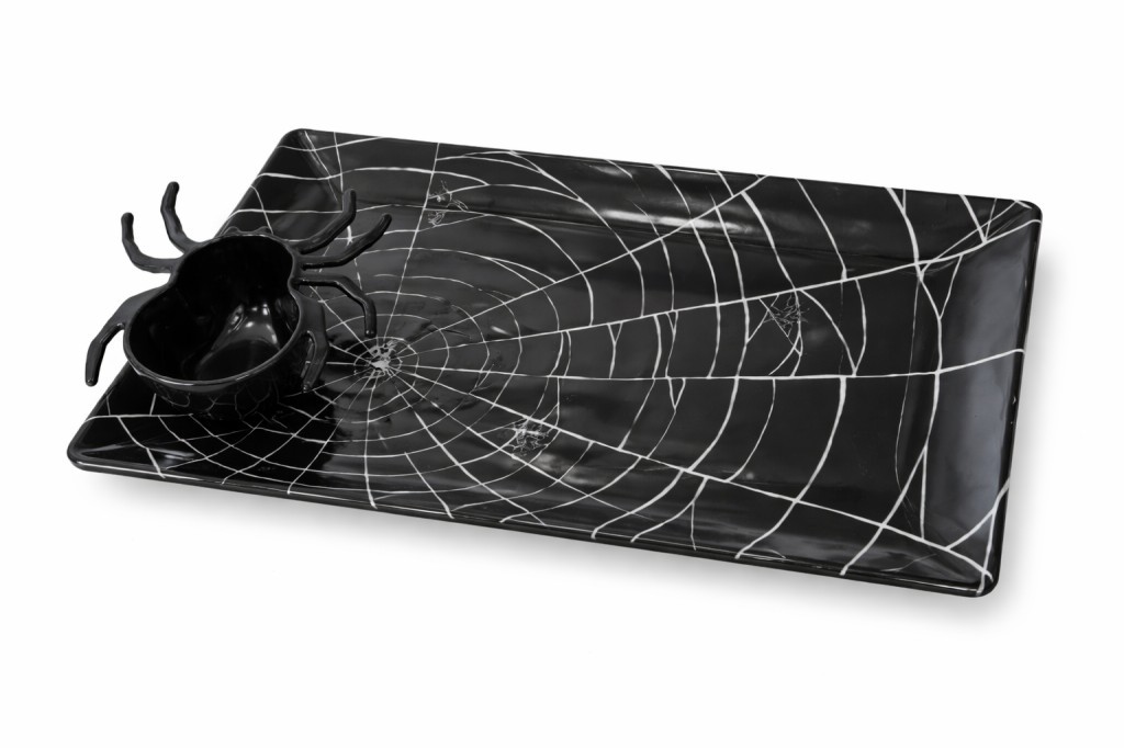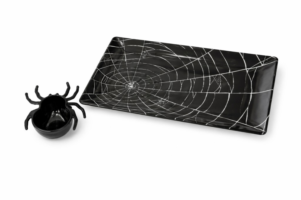 2-Piece Serving Set: Includes a rectangular serving tray and matching spider dip bowl