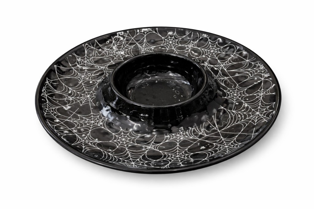 Spider Web Halloween Design: Black platter with white spider web pattern for a spooky look