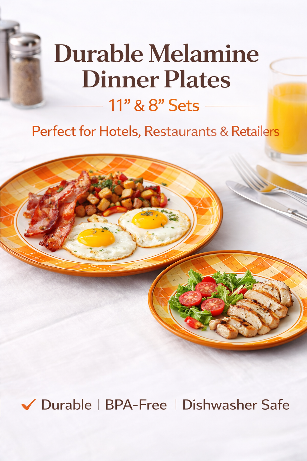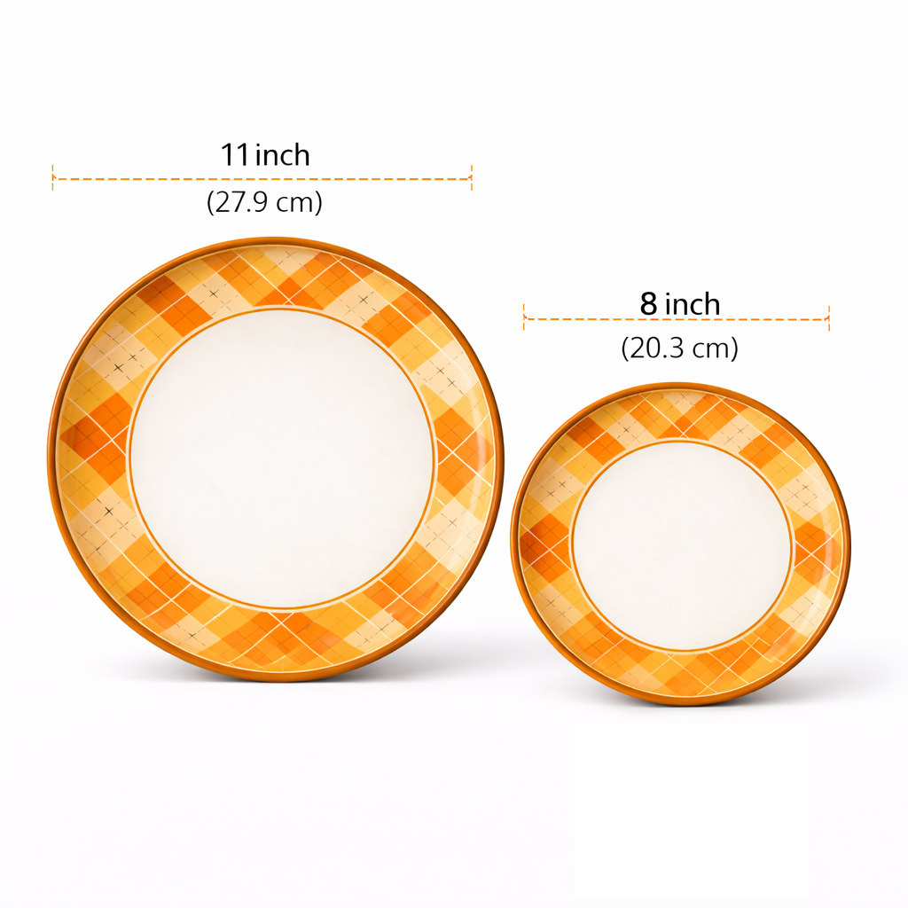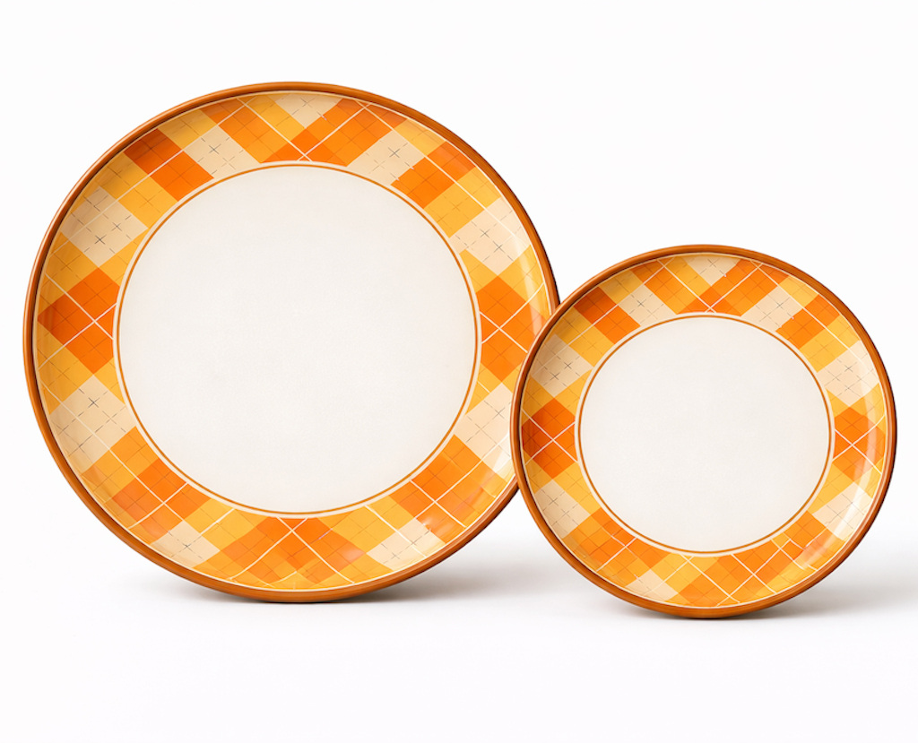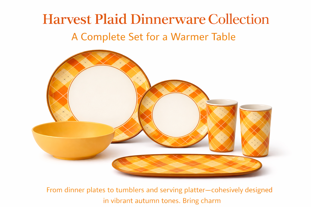 Warm fall colors for seasonal dining and thanksgiving melamine dinnerware collections.