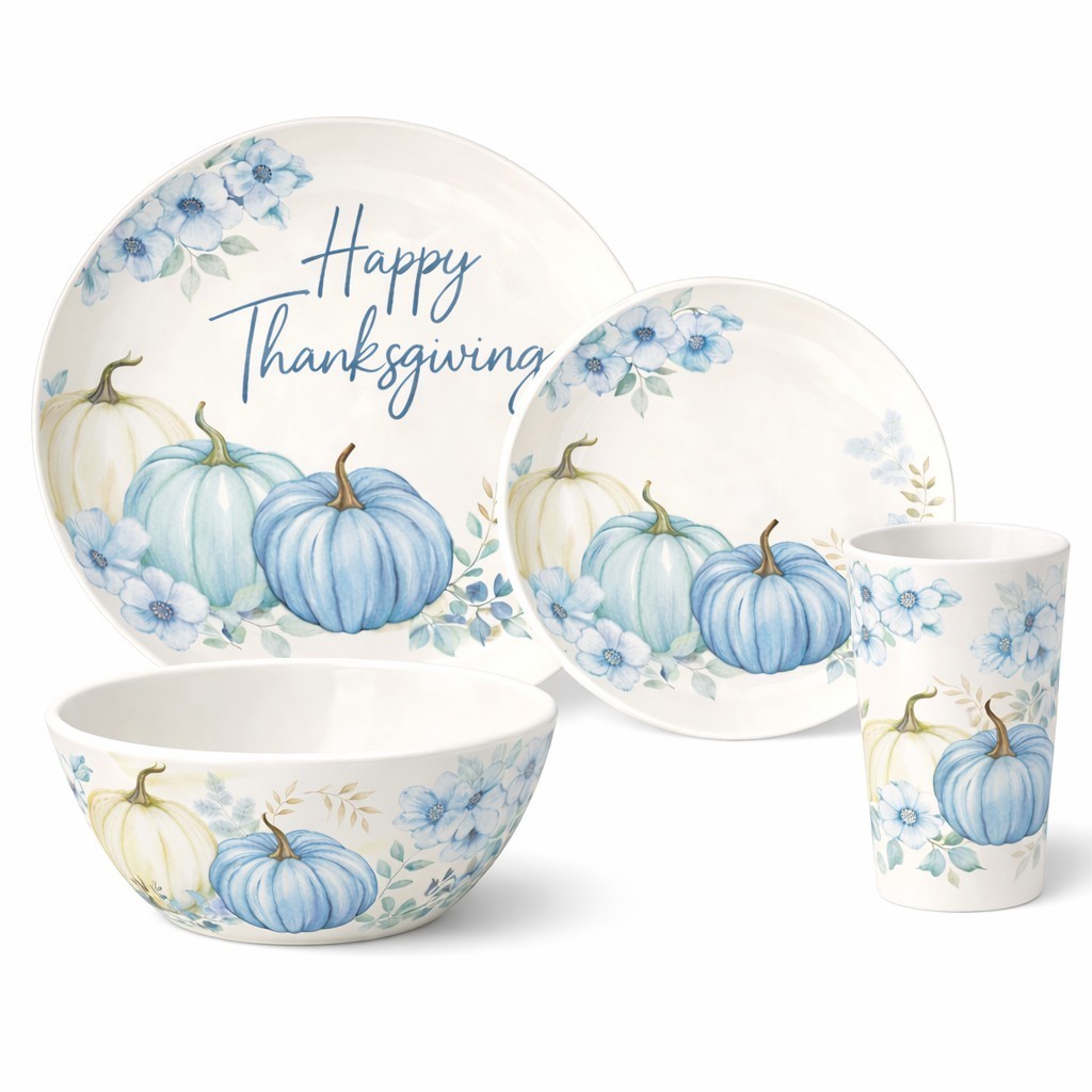 Thanksgiving Pumpkin Floral 4-Piece Thanksgiving Melamine Dinnerware