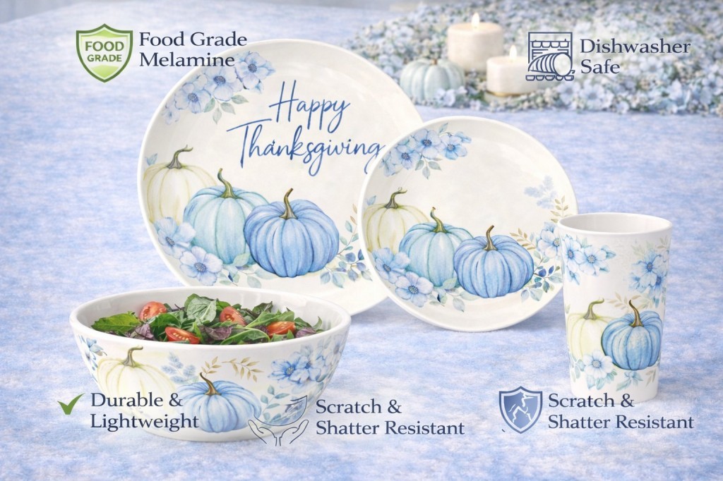 Thanksgiving Melamine Dinnerware with pumpkin floral design
